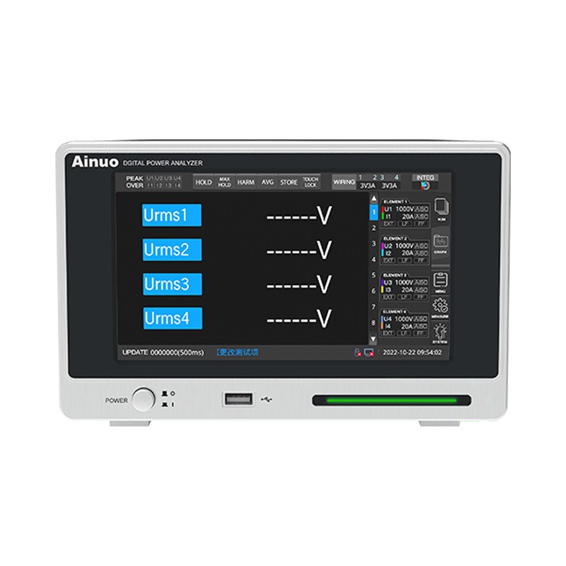 ANPM400 紧凑型功率分析仪 基本精度:±0.1% 测量带宽:DC,0.5Hz~100kHz 采样速率:200kSps 最大电压:常规1000V,选配1500VDC 最大电流:20A(常规)/5A/1A,支持混合搭配,可选配传感器 液晶显示:全触屏体验,显示界面条目自定义,波形显示 数据存储:存储项目自定义,CSV格式导出 **尺寸:3U半宽尺寸,符合系统集成要求 产品性能特点 多通道:1~4通道同步测量单元配置,可灵活配置各个通道的线制模式,满足多种负载(空调、逆变器、变频器、电机)测量需求 高精度:使用高速FPGA+ARM处理器双核处理,16位高速高精度AD转换器,基本精度可达0.1%,最快100s显示数据更新周期; 宽功率:单通道可测量电流20A(可选配5A、1A等规格,且支持混合搭配),功率最小分辨力0.1mW,满足待机功耗测量需求和额定功率测量需求 宽频带:交流、直流信号两用,功率测量带宽DC、0.5Hz~100kHz,可满足各种标准和非标准正弦波形负载功率测量; 多路谐波分析:四通道可同时进行谐波分析,最高100次谐波测量,失真度分析,可直观显示各次谐波含量和总含量; 多路频率测量:四通道可同时进行频率测量; 线路滤波:采用500Hz、5.5kHz的低通滤波器,可测量PWM波形的基波值,滤掉开关电源电流高频干扰: 传感器:变比功能,支持常规I-I、V-V型电压/电流互感器;支持BNC接口的I-V型电流传感器,最大输入电压10V,可选配大电流传感器; 效率计算:可同时测量设备的输入、输出能耗,并计算出其效率; 电能累积:可单独累积正向电能量、反向电能量和综合电能量,进行买卖电能测量