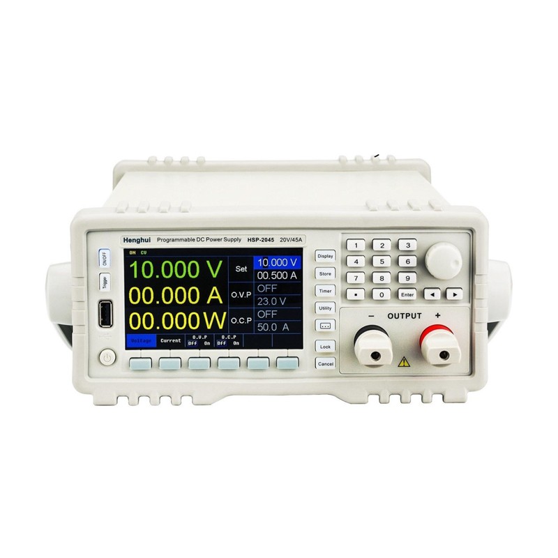 HSP系列 高性能可编程直流电源 HSP系列产品是一款高精确度单输出的可编程直流“开关+线性”调整电源,轻便小巧,可调,多种操作模式。整个系统完全由微处理机(MPU)控制,可以轻易的利用通讯接口(RS-232) 与计算机 (PC) 联机,来满足使用者对自动测试及自动控制方面的需求,其软件指令完全符合 SCPII、MODBUS 命令格式, 方便使用者自行开发自动测试及自动控制应用程序。由于系统的全数字化,数据输入完全由键盘及旋钮控制,快速精确且方便。可以广泛用于电子产品开发、器件测试、通信行业、实验室和科研机构。适用于高低电压频繁切换输出的应用环境。 产品性能特点 高精确度和高分辨率1mV/1mA 4.3寸TFT彩色液晶显示,可以全面地显示电源的状态 具有高功率因数和高效率,达到与线性电源相同的0-Vout 连续可调 具有输出控制开关,控制更加灵活 方便且快速的操作与设定界面,高速调节旋钮和数字按键输入 过载,极性接反保护,过压保护,过流保护,过温度保护 一键锁定功能,有效防止误操作 内置蜂鸣器作为提示或警告 温控风扇转速使仪器具有低噪声,风扇寿命更长久 支持快速调取功能,10组存储的电压电流数据,一键开启 掉电保存 恒功率输出 恒压/恒流自动切换 远程感应实现补偿负载线的压降 支持锂电池和铅酸电池曲线充电功能 可显示负载电阻值,具有低电阻测量功能 触发记录数据 可存储/调用300组电压电流等数据,定时执行可达到简易的自动测试目的 具有定时输出功能,支持无限及指定循环次数的输出 支持U盘存储,本地LIST 序列编辑并可通过前面板USB接口导入序列文件 CC优先,有效抑制浪涌电流,保护待测物。 熔断测试(熔断时间) 脉冲测试(电压或电流缓升缓降) 输出计时(倒计时关闭输出) 电压电流极限报警(上下限判断) 标配RS232接口和RS485接口,编程指令集符合SCPI和MODBUS-RTU协议 选配电源输入AC 110V±10%, 50/60Hz 选配模拟控制接口 选配以太网接口 选配GPIB接口(功率是900W的电源) 选配外接OUT 板,可实现正负输出(双极性电源),正负极接反保护 选配电压电流功率数据记录分析软 体积仅1/2机架宽、2U高,桌面和系统均可使用 产品详情
