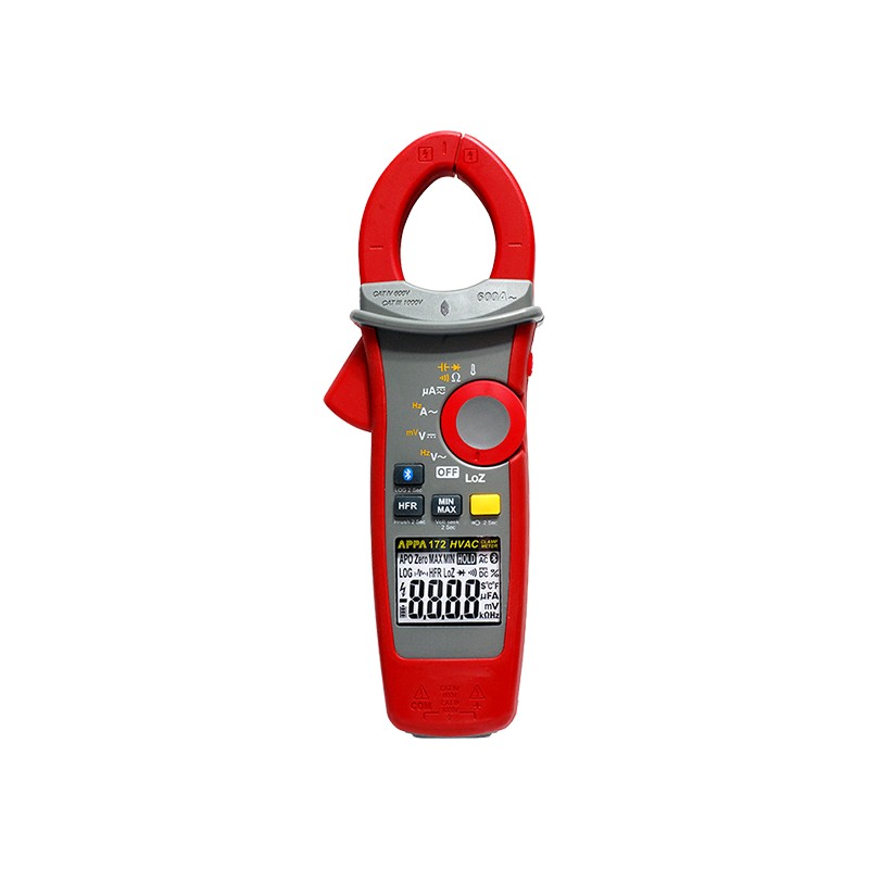 全新设计的蓝牙钳形表 6000计数显示 LED背光显示 直交流电压1000V 交流电流600A 交直流电压模式具真有效值量测 数据记录/手动保存多达4000条记录 L0Z用于防止幻影电压的错误读数 高频阻挡(HFR) 浪涌电流测量(100ms) DCμA用于火焰棒测试 技术参数 规格 | 交流电流 | 600.0安培 | 交流电压 | 0.1V~1,000V | 直流电压 | 0.1mV~1,000V | 频率 | 100.0赫兹~10千赫兹 | 电阻 | 600.0Ω~600KΩ | μA | 4000μA | 电容 | 100.0μF~1,000μF | 温度 | -40°C~400°C / -40°F~752°F | 连续性蜂鸣 | 20Ω ,2.7K | 二极管 | 1.8V | LoZ | 0.1V~1,000V | 基本信息 | 显示计数 | 6,000 | 采样频率 | 3 次/秒 | 过压指示 | ”OL” 或 “-OL” | 低电量提示 |