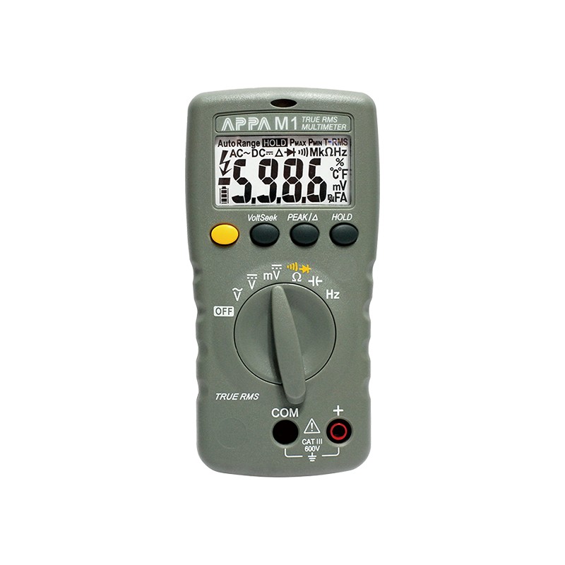 口袋式真有效值万用电表 6000计数显示 自动档位 真有效值交流电压 0.5%直流电压准确率 用于采集峰值读数的峰值保持 非接触式电压侦测 技术参数 规格 | 直流电压 | 6.000V, 60.00V, 600.0V | 交流电压 | 600.0mV, 6.000V, 60.00V, 600.0V | DCmV | 600.0mV | 电阻 | 600.0Ω~40.00MΩ | 连续性蜂鸣 | <30Ω, 2.7KHz | 二极管 | 1.500V | 频率 | 100.00Hz~50.00KHz | 电容 | 50.00nF~1000μF | 基本信息 | 显示计数 | 6,000 | 采样频率 | 3 次 / 秒 | 过压指示 | "OL" 或 "-OL" | 低电量提示 |