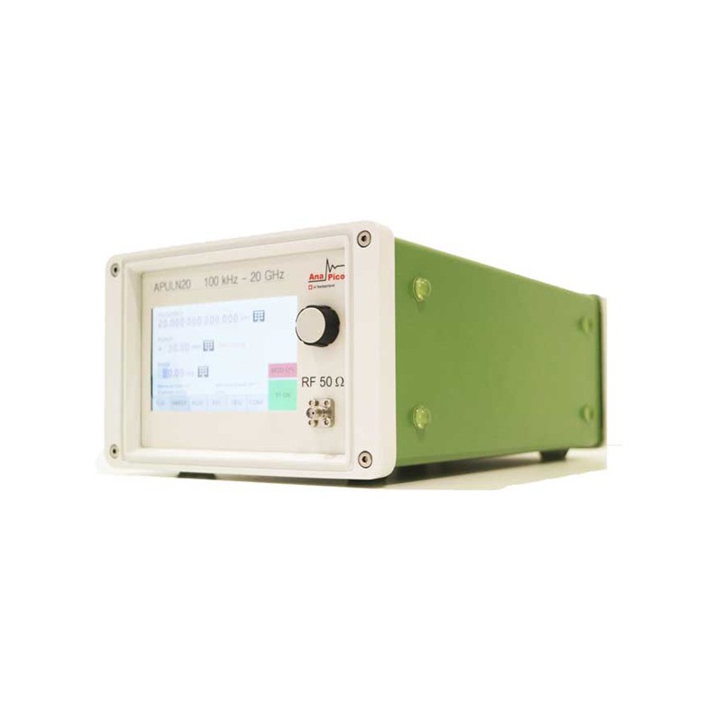 APULN系列高性能的模拟信号发生器,输出涵盖从100 kHz(可选8 kHz)到12.75、20、26和40 GHz的微波频率范围并拥有0.001Hz的频率分辨率。该模拟信号发生器将非常好的信号纯度,极低相位噪声,高输出功率和30µs的高速切换速度等特性相结合,支持各种模拟调制,并包括具有可码型编程模式的脉冲和啁啾调制。APULN系列模拟信号发生器同时拥有紧凑型尺寸,轻巧的重量和低功耗(可使用外部充电电池供电),使该仪器非常适合在实验室,制造和室外等领域使用。 产品型号