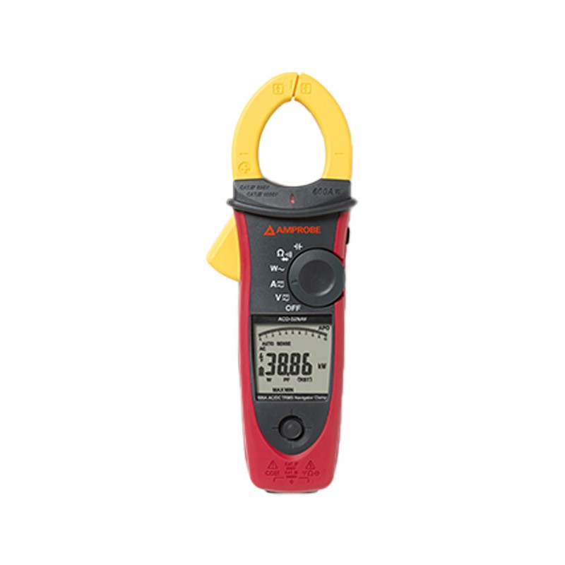 ACD-51NAV CAT IV 真有效值 NavigatorTM 钳形表 产品特点 • 真有效值技术,提高多噪环境下的精度 • 测量高达1000 V交/直流电压、高达600A交流电流,以及电阻、频率、电容、功率因数、谐波畸变(THD),以及从1次到25次的各次谐波 • 包括浪涌电流测量,以及3相电机的相序指示 • 非接触式电压检测,提高安全性 • 低通滤波器,支持测量变频驱动的电压和频率 • 通断性蜂鸣器,快速识别短路和开路 • 宽大明亮的背光照明数字屏幕,带有模拟指示 • 最大/最小值和智能数据保持 • 峰值保持,识别尖峰毛刺和瞬态 • 当钳口伸入昏暗的配电盘和接线盒时,钳口手电筒自动照明 • 自动关机功能,延长电池寿命 • 最大钳口开口尺寸支持直径高达37 mm的大导体 • 橡胶模压机身可有效吸收冲击——可承受1.2 m跌落 • CAT IV安全等级 • 含测试线、电池(已安装)、豪华便携包和用户手册 产品特色 ACD-51NAV / ACDC-52NAV钳形表可测量600 A交流电流,ACDC-54NAV 钳形表可测量高达1000 A交流电流、高达1000 V交直流电压,拥有可测量粗大导体的宽钳口。 该钳形万用表非常适合工业电力监测以及检验系统状态。此款钳形表提供齐全的诊断功能,包括相序、功率和功率因数、总谐波畸变和各次谐波、浪涌电流和低通滤波器。 技术指标