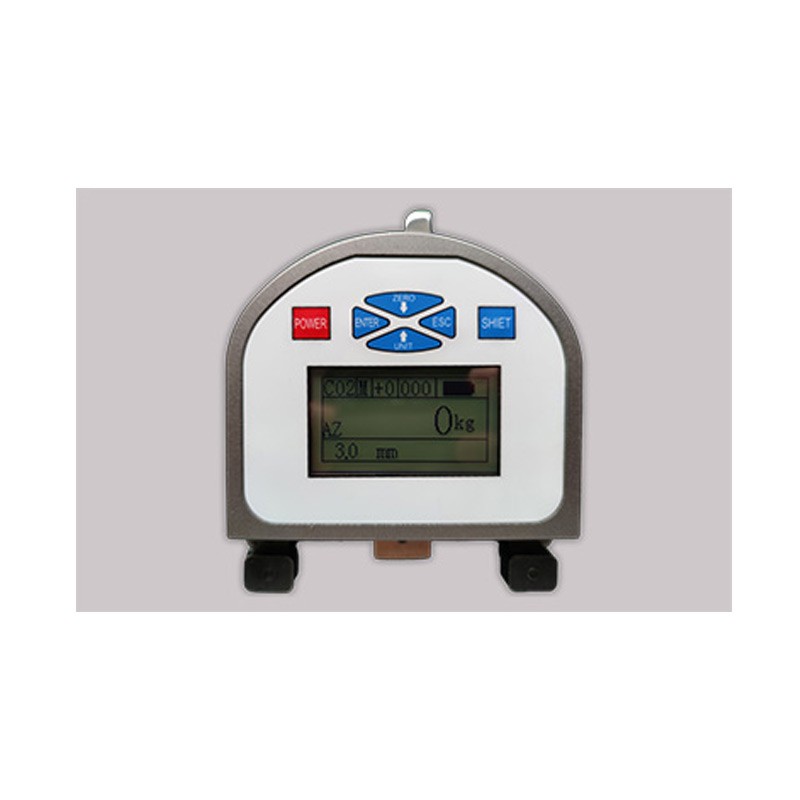 产品特点 1.专利技术自动清零,仪表在任何姿态都可以自动归零,提高测量精度,方便测量。 2.LCD背光显示,读数清晰准确。 3.三顶块设计,中间顶块可上下移动,方便捕捉被测线材。 4.省力压杆设计,及时测量值达到500KG,依然可轻松完成。 5.坚固的防滑铝制外壳,抗电池干扰。 6.LIPO锂离子聚合物电池(可持续运行约10小时) 7.被测材料,顶块,屏幕位于同一平面,测试中数据,顶块和被测材料状态尽收眼底。 8.最多可以标定10种材料。 9.全字符菜单设置功能,操作简单方便。 10.根据不同量程和需要,测量值显示单位可选择kg, N ,daN, lb 11.可记录测量过程中的最小值,峰值,平均值,还可记忆存储200个独立的测量值。 12.可编程设置趋势状态条,清晰判断张力变化的范围,兼具机械式仪表趋势显示优点。 13.提供显示结果微调功能,现场测量的材料和标准的标定材料有轻微偏差,不需要重新标定即可显示准确值。 14.功能设置可以通过密码进行保护,提高设置安全性。 15. 百坦张力仪提供两种显示方式,兼顾电子张力仪读数和机械式张力仪趋势显示的优点。