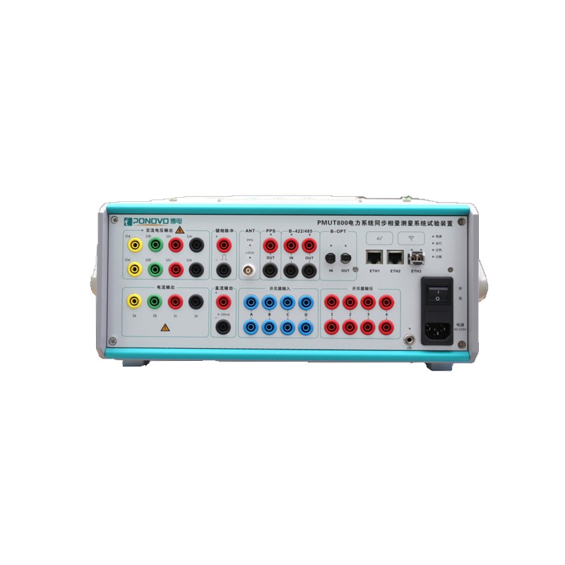 PMU测试仪的功能满⾜《GB/T26862-2011电⼒系统同步相量测量装置检测规范》、《DL/T280-2012电⼒系统同步相量测量装置通⽤技术条件》、《Q/GDW11202.6-2018智能变电站⾃动化设备检测规范第6部分:同步相量测量装置》及《Q/GDW11202.11-2022智能变电站⾃动化设备检测规范第11部分:宽频测量装置》对PMU及宽频测量装置功能测试的要求。 产品特点 可输出三相交流电压、电流信号。信号频率、幅值、相角可调。信号的相角设置符合同步相量角度定义。 三相交流信号的频率、幅值、相角可实现阶跃变化,跃变时刻与PPS同步。 在三相交流基波信号上可叠加2至50次谐波分量,或0.01~49.9次间谐波。 三相交流电压信号可进行幅值调制、频率调制、相角调制,以及幅值、相角同步调制。 三相交流信号频率可进行线性渐变,每周期变化次数不小于500次。 可同时模拟发电机机端电压和键相脉冲信号,相角可控。 可控制4路开关量输出,监视4路开关量输入。 WAMS主站模拟软件可实时获取PMU上送相量数据,最大获取速度100帧/秒。通讯规约符合《GB/T 26865.2 电力系统实时动态监测系统 第2部分:数据传输协议》。 技术参数