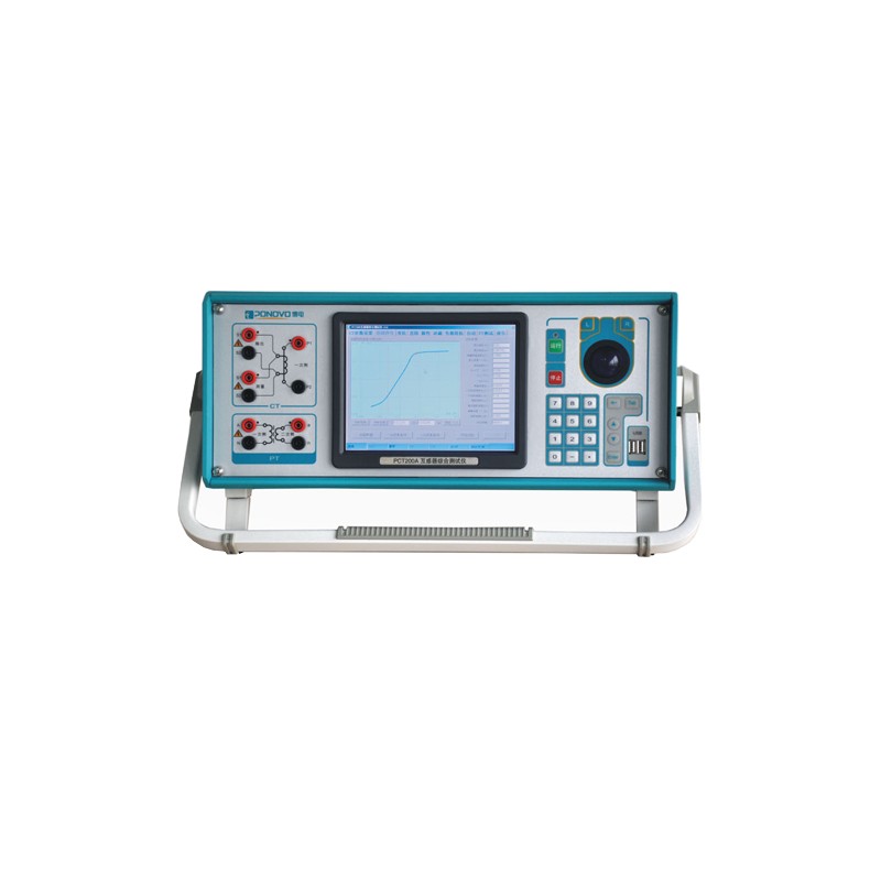 PCT系列互感器综合测试仪适用于电力系统中的电磁式电流互感器(CT)、电磁式电压互感器(PT)测试。 产品特点 仪器采用全新的直流法原理,励磁特性测试速度极快。 通过武高所的检测,具有武高所出具的校准证书,报告内容包括比差、角差精度测试,仪器稳定性测试。 8.4寸真彩液晶屏,全中文彩色图形界面,方便人机交换 全中文智能输入法,使用方便 整机一体化结构设计,使用抗震动、抗电磁干扰组合机箱。 内置工控机,操作方便,所有的测试自动完成并基于同于接线,减少了测试时间。 仅需输出较小电压和功率,因而体积小,重量轻,尤其利于现场测试。 内置线性放大器,响应时间快、精度高、可靠性高,最大输出交流电压120V,最大输出电流5Arms(15A峰值)。 电压法测量CT,摆脱传统电流法无法做套管CT的禁锢,测试变比高达5000:1。 仪器采用全新的直流方波法原理,可以测试拐点电压高达45000伏的CT,励磁特性测试速度极快,突破了传统工频法的局限性,全面超越传统测试仪器。 功能全面,可用于保护级CT的励磁、变比、极性、二次绕组电阻、负荷等稳态特性测试,自动测出拐点电压/电流、5%、10%误差曲线、准确限值系数(ALF) 具有猜铭牌功能,对于丢失铭牌的CT,自动给出变比、CT级别、ALF、额定负荷。 用户可以根据需要选择十组励磁数据进行保存 仪器自动记忆测试功能选项、报告选项、报告设置选项,提高使用效率 测试结果可直接在本机生成EXCEL报告并可直接查看、打印,仪器内部可保存上万条报告 测试结果可用U盘导出,程序可用U盘升级,方便快捷 配有后台分析软件,方便测试报告的保存、转换、分析,可以用于试验数据的对比、判断与评估。 可用于测试变压器套管CT及GIS内CT。 能够完成PT功能的测试:变比、极性、伏安特性 适用范围 利⽤直流法原理,专业⽤于电磁式电流互感器特性测试,功能强⼤,操作简单,满⾜各类型电流互感器测试要求。适⽤于互感器⼚、科研院所、发电⼚以及各电压等级变电站。 产品功能 CT测试: 变比 极性 比差、角差(100%额定负载 100%额定电流下) 快速变比 猜变比 匝比、匝比误差 二次直阻 负载阻抗 励磁特性 5%、10%误差曲线 手动退磁 准确限值系数 复合误差 猜** PT测试: 变比 极性 技术参数