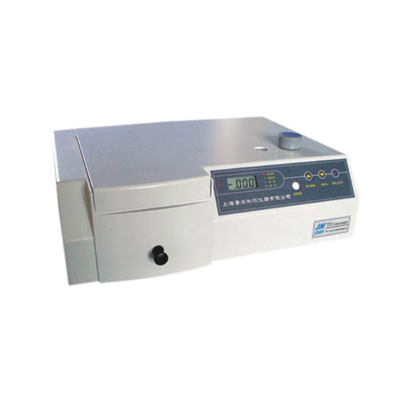 产品说明 分光光度计的原理是由一光源产生的连续辐射光经色散系统(单色器)分解成波长连续的单色光,单色光通过照射到样品池上,经过池中样品时会产生吸收,通过检测出射光的强度S和入射光的强度R,透射率T=S/R。如果连续调整波长(即扫描),就可以得到在生化样品关于波长分布的透射率,其透射率关于波长的分布和样品的成分和浓度相关。从而判断样品的成分,浓度。 分光光度仪通常用作物质鉴定、纯度检查,有机分子结构的研究。在定量方面,可测定结构比较复杂的化合物和混合物中各组分的含量,也可以测定物质的离解常数,络合物的稳定常数,物质分子量鉴别和微量滴定中指示终点以及在高效液相色谱中作检测器等。 1200L/mm光栅、C-T式单色器结构、样品室可选择100mm的样品架、具有T、A、C、F等功能,可选配专用软件实现分析数据多角度,存储调取更方便。带RS232通讯接口可选配打印机。 技术参数