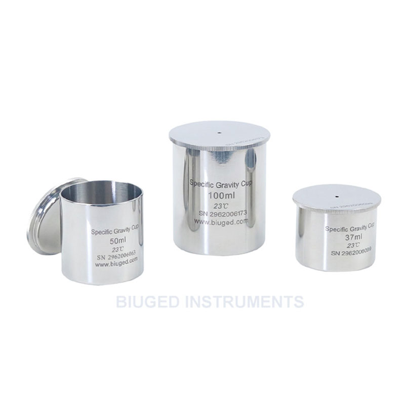 产品说明 密度是指在特定温度下的单位体积的重量。它被用作质量控制,因为涂料中组分的错误会产生不同的密度读数。 本公司销售的密度杯为圆柱型,大开口,方便倒入﹑倒出及清洗。与比重杯紧密配合的不锈钢盖(内侧呈凹形)中央有一个小孔,使多余的样品材料可溢出而不产生气泡,这样可增加精度。 比重杯由精加工的耐腐蚀不锈钢材料制成,使用公制单位,比重杯可盛规定量的液体。Biuged提供三种不同尺寸的密度杯,它们均符合GB/T 6750《色漆和清漆 密度的测定 比重瓶法》(等同ISO 2811-1),适用于试验温度下低、中黏度物料密度的测定。 主要技术参数 100ml体积的ISO标准尺寸;50ml的特定体积;37ml体积的GB标准尺寸保证误差在1mg (0.001%)之内。测试在23°C±2°C进行,符合ISO标准。 由防腐蚀的不锈钢制成 带校准证书 订购信息: