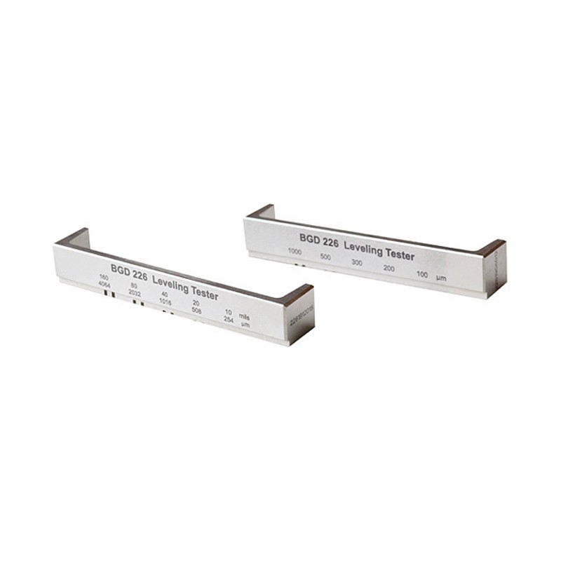 产品说明 此仪器提供评估新施工的涂层在固化前流平性能的一种方法,从而减少或消除由于刷涂或是其它涂装引起的涂层表面条痕。用这特殊设计的涂膜器评估流平性能,类似于滚涂方法的评估,但比滚涂更稳定。由于有各种因素影响流平和流挂,对这些性能的测试相互不应混淆,流平试验是在水平试板上进行的,它不是对流挂性能的测量。 流平测试仪是一个U型涂膜器,在其一边有浅的间隙,在间隙中切有一组间隔相等的五对窄V字形槽,它们的槽深分别为100,200,300,500和1000μm不等。流平仪两端长 120mm,可一次涂出100mm的拖拉膜。 拖拉按照通常程序在水平放置的试板或是卡纸上进行。它产生5对十条不同深度的涂层痕,待涂膜干燥后观察各个对膜之间的距离,选择最小间距(既当两条条纹并拢时中间还有一条间隔隐约可见的缝隙)的对膜厚度为流平性的数据。 技术参数 ■ 材质:不锈钢 ■ 符合标准: BGD 226/1---ASTM D 2801 BGD 226/2---JB/T 3998,NYPC ■ 带校准证书 订购信息 BGD 226/1---流平仪(100-200-300-500-1000μm) BGD 226/2---流平仪(10-20-40-80-160mils/254-508-1016-2032-4064μm) |