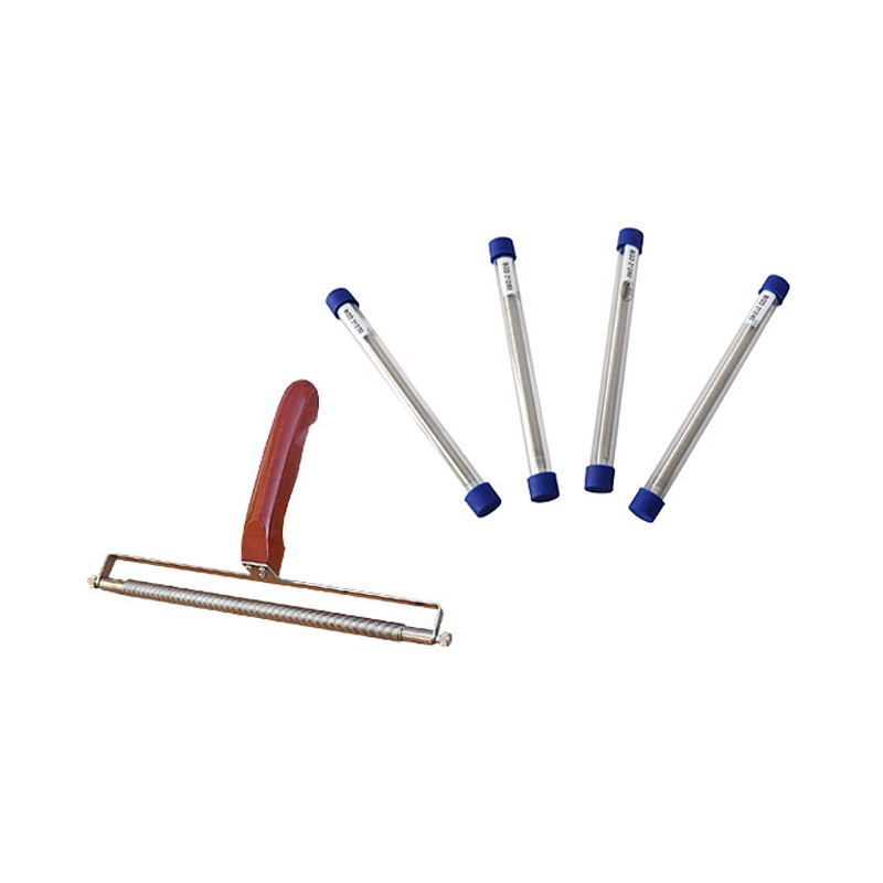 产品说明 用直径固定的不锈钢钢丝缠绕在一定直径和长度的不锈钢钢棒上,利用钢丝之间的间隙制备不同厚度的涂膜,是目前制备规定厚度涂层最通用的方法,尤其在建筑涂料领域。比如缠绕钢丝的直径为0.80mm,则规定该线棒涂布器规格为80微米;缠绕钢丝的直径为1.00mm,则规定该线棒涂布器规格为100微米。 值得注意的是:该方法规定的线棒涂布器规格厚度仅指可制备的理论湿膜厚度,而实际厚度与诸多因素有关(如涂料的流变性能、涂布速度等),一般经验表明:只能得到大概80%左右的实际湿膜厚度。 技术参数 ■ 有效涂布宽度:200mm ■ 涂布棒:总长240mm;直径10 mm;未缠钢丝部分长度左右各20mm ■ 可选规格:6-8-10-12-15-20-25-30-40-50-60-80-100-120-150-200 微米 ■ 棒及绕线均采用高级耐磨不锈钢材质 ■ 非常适合涂布很薄涂层,如:罐头涂料及纸张涂料的试验 ■ 用于柔软的材料如纸张﹑纸板﹑测试卡纸﹑箔纸﹑皮革﹑纺织品等效果最理想 ■ 最大可涂布的湿膜厚度刻在线棒的端部 订购信息 BGD 212/6---6微米线棒涂布器 BGD 212/8---8微米线棒涂布器 BGD 212/150---150微米线棒涂布器 BGD 212/200---200微米线棒涂布器 BGD 1152---线棒涂布器手柄 BGD 216---组合线棒涂布器(包括任意四支BGD 212线棒;手柄一个,螺丝刀一个,携带箱一个) |
