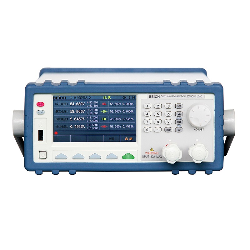 CH9716F 电动车充电器测试仪 概述 为了更好的顺应充电器测试的发展需求,我公司在集成了多年充电器测试仪器的研发经验与用户的综合反馈后在原CH8711F/8712F基础上改进研发了新一代CH8716F(已停产)/CH9716F(电压150V/电流30A/功率300W)充电器测试仪,该系列仪器采用高性能ARM处理器,全中文设置界面,为用户提供了人性化的操作环境,现已在众多大型充电器生产厂家获得广泛应用,获得好评。该测试仪器具有测量参数全面,速度快,精度高等特点,所有参数经2-3秒测试即可完成,并可判断合格与否,为生产厂家极大提高生产效率,降低生产成本。 CH9716F 电动车充电器测试仪 产品特点