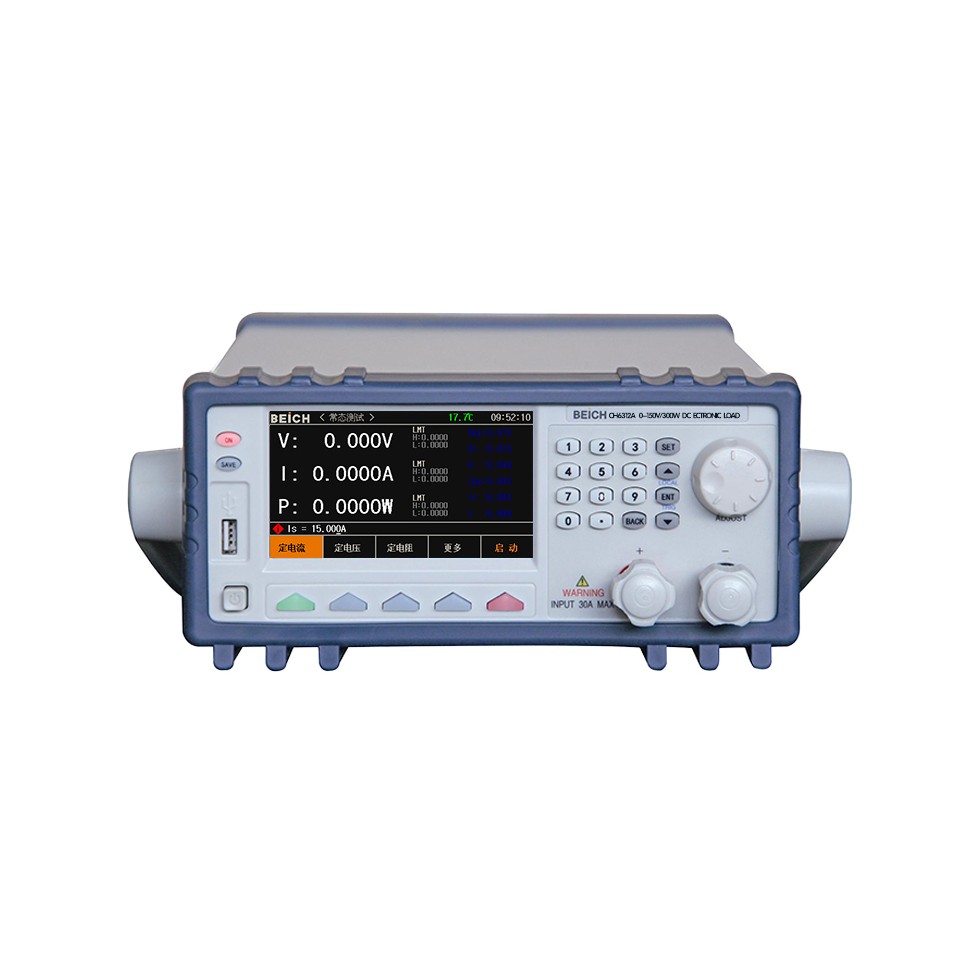 CH6311系列电子负载是我公司在电子负载领域多年的专业积累,和广泛的客户基础上,新推出的新一代高性能多功能程控直流电子负载。采用高性能ARM处理器配合500kHz高速采样AD,可更精准的模拟各类电源负载特性;4.3寸TFT彩屏支持中英文界面,配合精心设计的引导式菜单,操作得心应手;显示信息丰富全面,直观方便;拥有0.0001的更高显示分辨率,应对更多测试场合;USB HOST 、USB Device,可方便与PC进行数据通讯及数据保存并可以方便的使用U盘进行固件升级;全面的比较器功能配合HANDLER接口,使得生产线批量测试和系统化测试更加有保障;拥有丰富全面的负载功能:定电流CC,定电压CV,定功率CP,定电阻CR,CR-LED测试模式(真实模拟驱动电源特性),电池放电测试(屏幕可以显示实时放电曲线),动态测试(测试电源动态输出性能),列表测试(测试电源在多种负载条件下的综合参数,包含比较器功能)及编程测试(捕获电源产品的临界参数,如OCP、OPP等);时间测量功能,可测试电源的开关机时间,柔性的软硬件构架可满足用户订制组合测试功能的要求,从而提高生产线测试效率;智能化的风扇控制和优良的散热性能,配合过电压、过电流、过功率、过热和电压极性反接等多种完善的保护报警措施,使得仪器更具可靠性和安全性;仪器全系标配有USB接口,配合丰富的SCPI指令集,可方便连接到电脑,进行实时数据采集和仪器控制。