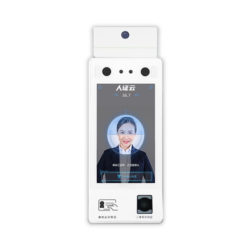 | 配置 | WIFI版/4G版(二选一) | | 处理器 | RK3288 四核 1.8G Hz | | 内存 | 运存:DDR3 2G; 存储: 16G | | 操作系统 | Android | | WIFI | 2.4G/5G双频, 符合IEEE802.11a/b/g/n/ac | | 4G功能 | 4G版支持移动网络4G上网 | | 蓝牙功能 | 符合Bluetooth 4.0 | | 阅读器模块 | 读卡时间<1s, 读卡距离0-3cm | | 人脸识别模块 | 人脸识别时间≤500ms, 核验时间≤2s | | 显示器 | 7寸高清触摸屏, 分辨率: 1280×720 | | 触摸屏 | 工业级多点触控电容屏 | | 摄像头 | 200万双目宽动态摄像头, 红外摄像头波长850nm | | 测温模块 | 非接触式体温检测, 检测距离50-120cm, 精度±0.3°C(室内环境0-35°C) | | 通讯接口 | RS485、TCP/IP、WIFI、Bluetooth 4.0、USB×2、RJ45、RS485接口、继电器、门磁、韦根输入输出 | | 工作时间 | 电源供电, DC 12V-3A | | 使用环境 | 工作温度: 0~+50°C, 贮运温度: -20~+60°C; 相对湿度≤93% | | 二维码 | 支持常规一维, 二维码识别, 支持健康码识别 | | 产品尺寸 (L×W×H) | 264×120×51mm |