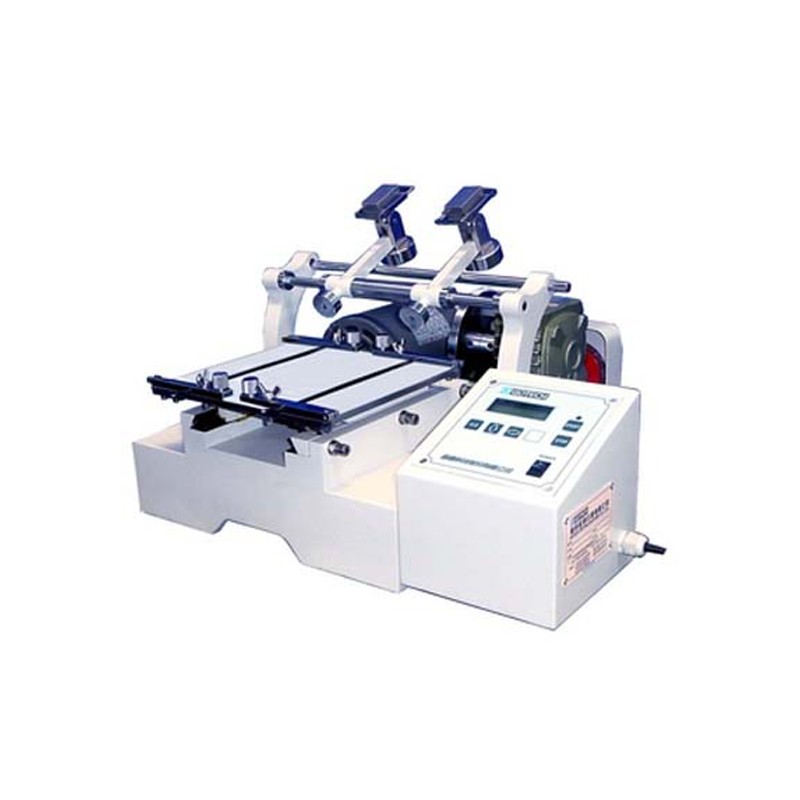 将长约300mm之电线,印刷体朝上,固定于本机台面上,用白棉布包着摩擦锤,以一定之荷重、速度及往复行程,摩擦印刷体,用以检视印刷体之坚牢度。 产品规范 UL-1581、UL-1690 产品规格 白棉布 | 人造丝70%,羊毛30% (自备) | 摩擦锤荷重 | 450±5 g | 摩擦速度 | 28 CPM | 摩擦距离 | 100 mm | 计数器 | 电子式,6位数;到达设定次数,自动停机 | 体积 | 56×55×37 cm | 重量 | 47 kg | 电源 | 1∮,AC 220V,2.6A (依国别或指定) |
