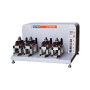 本机用于测量乒乓球外圆圆度之偏差。通过卡轴的下端接触测量球的最高点,计算百分表中显示的数值与旋转90度后显示的数值之差,即为该球的圆度差值。