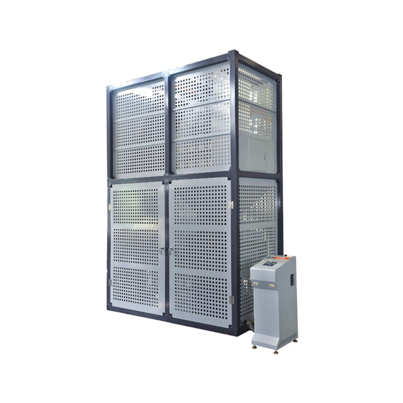 本试验机适用于试验软式排球的耐压力冲击性能,包括受一定冲击次数后的球体表面缺损,借助其它量具可测出冲击后的圆周长、圆周差、球体质量差等项目的数据变化。 用发球装置将排球以一定速度冲击水平面上的水泥板,在反弹成功穿过2米高度的直径为1米的圆环后,若能将球顺利收回,形成一个循环,则球达到一定次数且未损坏,即为合格品。 产品规范 GB/T 19851.6(4.7) 产品规格