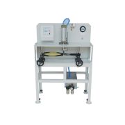 本机在测试球拍耐撞击程度时,将球拍把手固定于夹具上,然后以砝码加压,上下、左右调节冲击块,通过设定连续冲击次数,以水准位置自由下落,实现角度90º球拍侧面冲击试验,测试完角度自动上翻200º,检查球拍破损情况。