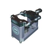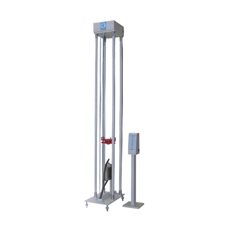 本试验机用于测试网球拍之耐冲撃性。将球拍固定于夹具上,拍网部份朝上,以一定高度利用电磁铁控制落锤落下,冲击拍网部份,检查球拍部份损伤情况。具有缺省冲撃高度,数显式冲撃高度,自动吸锤,自动上升等功能。