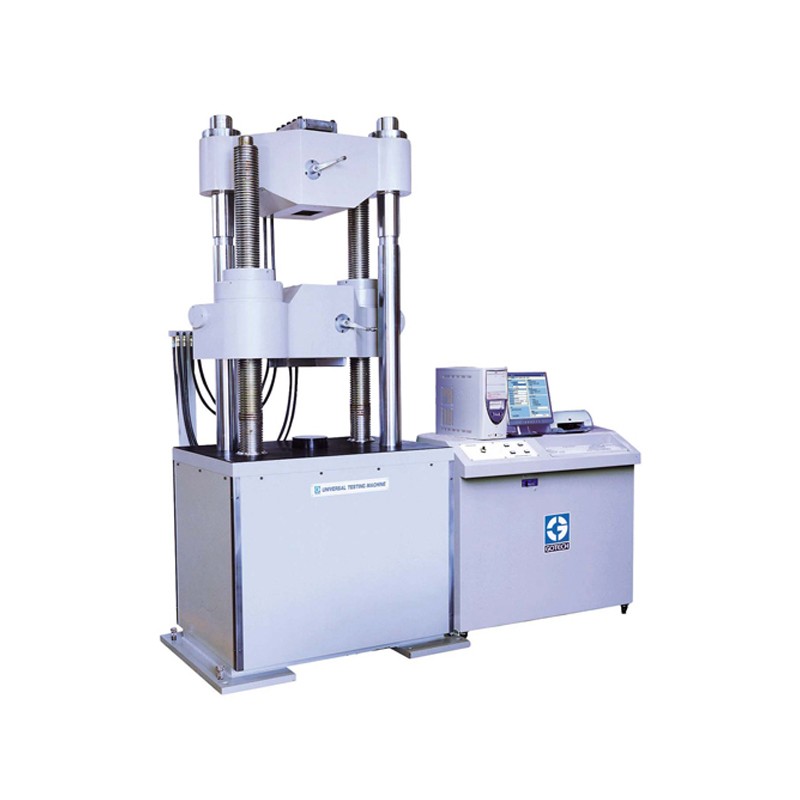 试验各种材料、成品、结构物之抗拉、压缩、抗折、弯曲强度及延伸、剪力、撕裂、剥离、非金属材料硬度...等。 为工厂实施品管、学校、机构研究材料物理特性,发展材料科学之重要设备。 产品规格 型号 | GT-7001-LSU200 | GT-7001-LSU100 | GT-7001-LSU50 | GT-7001-LSU30 | GT-7001-LSU20 | GT-7001-LSU10 | 容量 | 2000kN | 1000kN | 500kN | 300kN | 200kN | 100kN | 速度(空负载) | 0.01~65mm/min | | 0.01~70mm/min | 0.01~90mm/min | 显示方式 | 电脑显示 | 力量放大倍率 | 无段 | 试验力分解度 | 1/500,000 全程不分档且全程分辨率不变 | 试验力示值误差 | 小于±1% | 动力方式 | 伺服控制油压系统 | 抗拉 | 最大间距(1) | 500mm | 550mm | 420mm | 460mm | 圆棒夹持直径 | Ø12~Ø85mm | Ø13~Ø75mm | Ø12~Ø50mm | Ø10~Ø40mm | 平面夹距 | 85×110mm | 70×90mm | 50×80mm | 40×60mm | 压缩 | 有效间距(2) | 700mm | 650mm | 540mm | 压盘直径 | Ø200mm | Ø160mm | Ø120mm | Ø100mm | 弯折(另购) | 有效间距(3) | 245mm | 225mm | 290mm | 280mm | 抗弯座 | 最大支点间距 | 790mm | 340mm | 390mm | 支点直径×宽幅 | Ø30×210mm | Ø30×145mm | 抗弯刀 | 刀缘半径 | R35mm | R22mm | R16mm | 刀宽幅 | 200mm | 160mm | 120mm | 100mm | | | 油压行程 | 230mm | 220mm | 调速方式 | 自动调速 | 支柱内侧有效间距 | 730mm | 650mm | 495mm | 500mm | 横担升降动力 | 马达驱动横担自走式 | 横担升降速度(约) | 170±10% mm/min | 200±10%mm/min | 250±10%mm/min | 300±10%mm/min | 体积 | 主机 | 148x135x321cm | 116x68x233cm | 96x63x211cm | 107x73x194cm | 123x82x181cm | 控制箱 | 119x69x145cm | 重量 | 主机 | 7715kg | 3250kg | 2405kg | 1270kg | 控制箱 | 255kg | 电源 | 3∮,220V,30A;3∮,380V,20A | 3∮,220V,20A;3∮,380V,14A | 3∮,220V,13A;3∮,380V,10A |