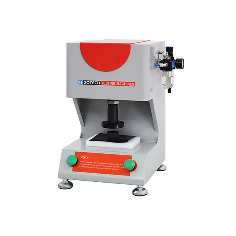 本机主要配合硫化试验机, 采用气压驱动汽缸压缩切刀之原理,切取标准规格橡胶类材料之试样,以供硫化试验用。