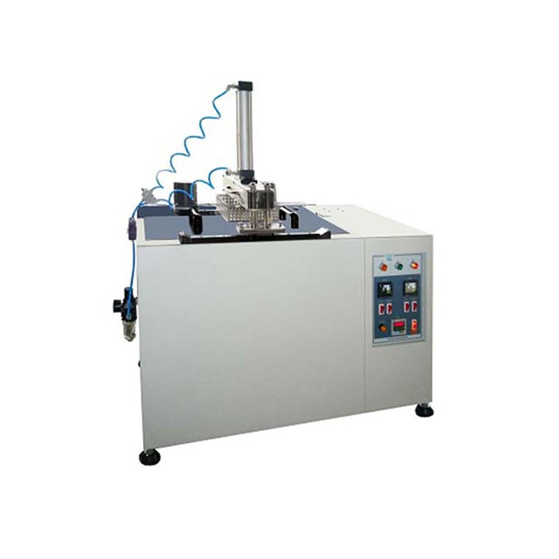 本机主要适用于测试防水手表的耐水温性能。 将试样置于10cm深40℃的水中5min,然后在1min内将试样再置于20℃的水中5min后,再置于40℃的水中5min,再进行冷凝测试以检查试样是否防水。 特点 1、可设定需要的测试温度和显示实际温度; 2、测试条件到达后机台自动停机,并有蜂鸣器进行报警; 3、通过马达带动滑轨上的网篮将试样在高低温槽内进行交换; 4、采用搅拌马达使水槽内的温度均匀; 5、低温槽采用压缩机制冷,降温速度快。 产品规格