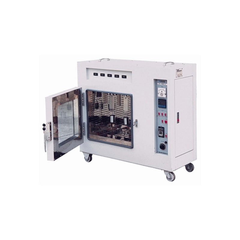 本箱专门测试胶带在定荷重及变温下之粘着保持力。取规定宽度之试様,贴于特定之钢片,赋予1kg砝码(或其它规定重量),胶带粘着力保持时间,可从计时器读取。