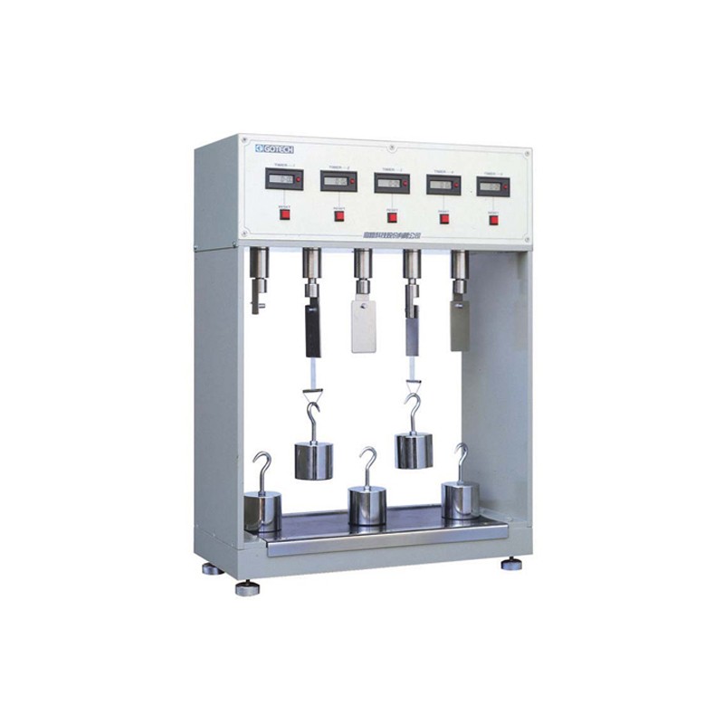 将胶带之一端以滚轮辗压,使之黏于试验板,下端悬吊规定之重量,经一定之时间后,量测胶带下滑之距离,如中途掉落,则记录时间,用以评定胶着保持力。