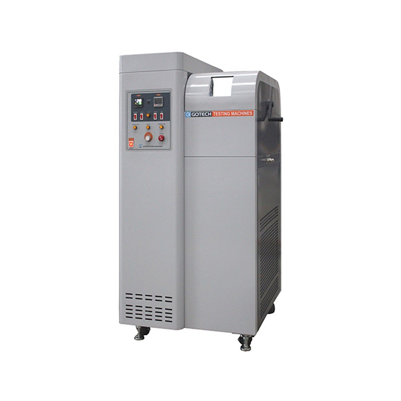 本机用于检查电线之塑料外壳以及硫化橡胶在低温测试时的脆化特性。将固定于 试验装置上的试样浸泡低温介质中5分钟,然后用冲撃头以2±0.2m/s的干速度冲击试様,最后检查试様在最低温度是否出现裂纹、裂缝、小孔、以及是否完分离成碎片。 采用二段式压缩机快速降温制冷,最低温度可达-70°C (如需低于-70°C温度,可于备用热交换器接口中接入液态氮,最低温度可达-120°C)。温度可控性高,低温槽中液体传热介质可启用搅拌马达,使温度均匀性更佳。毎次可测试4组试样, 自动旋转定位夹具对每组试样进行冲击测试,检査出现脆性破坏的最低温度。 产品规范 GB/T 15256-2014、ISO 812-2017、GB/T 5470-2008、ISO 974-2000、ASTM D746-2014、ASTM D2137-11(2018)、JIS K6261-2006、BS 903 A25-1992 产品规格