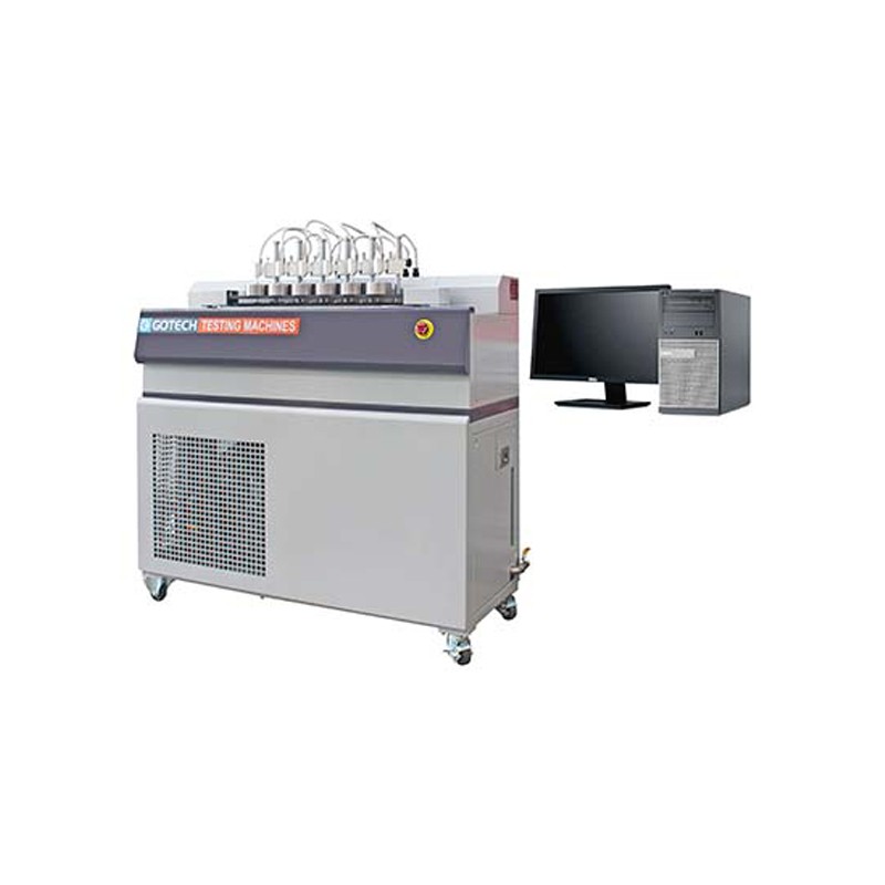 专用Advance软件系统,测试过程中可同时观看六组湿度曲线及高精度LVDT曲线。 Advance软件操作接口人性化,内建提供HDT、VICAT标准测试规范,使用简易。高精度LVDT线性修正,保证量测变形量精准。 功能特点 高精度LVDT传感器,到达变形值,自动记录曲线并停止测试,无需人工值守。 可移动LVDT传感器固定支架,快速调节传感位置。 试样座及砝码支架,电动起降,重放试样时无需挪取砝码,可快速置样。 温度线性修正,保证温度精准,自动计算所需测试荷重。 变形及机架变形修正,克服系统自身产生之形变误差。 油箱密闭式排烟结构,保证实验室环境舒适。 采用涠流式搅拌,使测试油温更均匀。 减少油槽体积,减少导热油用量,提高升、降温效能,节约用油用电。 标配外部自动进水电磁阀,水冷式交换器(可选购快速低温冷却系统)。 产品规范 ASTM D648-18、ASTM D1525-17e1、ISO 75-1:2013、ISO 75-2:2013、ISO 306:2013、GB/T 1634.2-2019、GB/T1634.1-2019、JIS K 7206-2016 产品规格