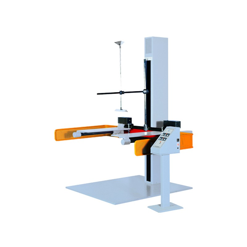 本试验机用于测试包装物品坠落后的受损情况,供生产厂家对产品包装搬运时采取有效控制措施。双翼落下试验机在跌落测试过程中,载物架作旋转运动,保证载物架与包装试件分离,实现包装试件的自由跌落,冲击振动小,稳定可靠,可以完成面、棱、角跌落试验。