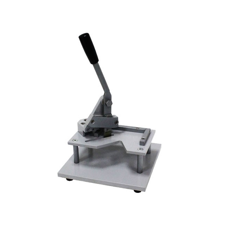 切角机:将试样之两侧,切去一角,配合竖压夹具,于环压机上,测试蝶形试片之竖压强度。
