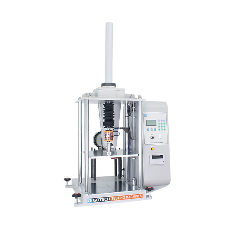 本机用于测试纸管、纱管、胶带管、纸罐等材料之横压强度。将试样置于上下两压盘之间,然后施予规定之速度,上压盘向下压缩试样时,上压盘上端的力量传感器感受到压力,并将压力转换成电压讯号输给控制器,同时把压力值显示于数字显示屏上。