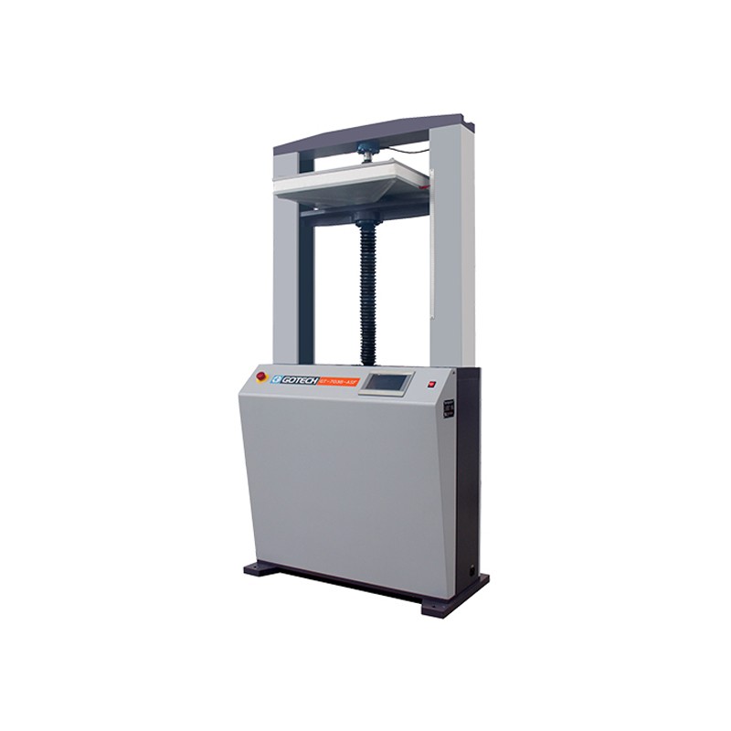 用于测纸箱的耐受压抗力。以伺服马达驱动下横担以规定速度运行,上横担配备高精度力感应器,试件在上下压盘间做压缩,其抗力值由显示器显示出。
