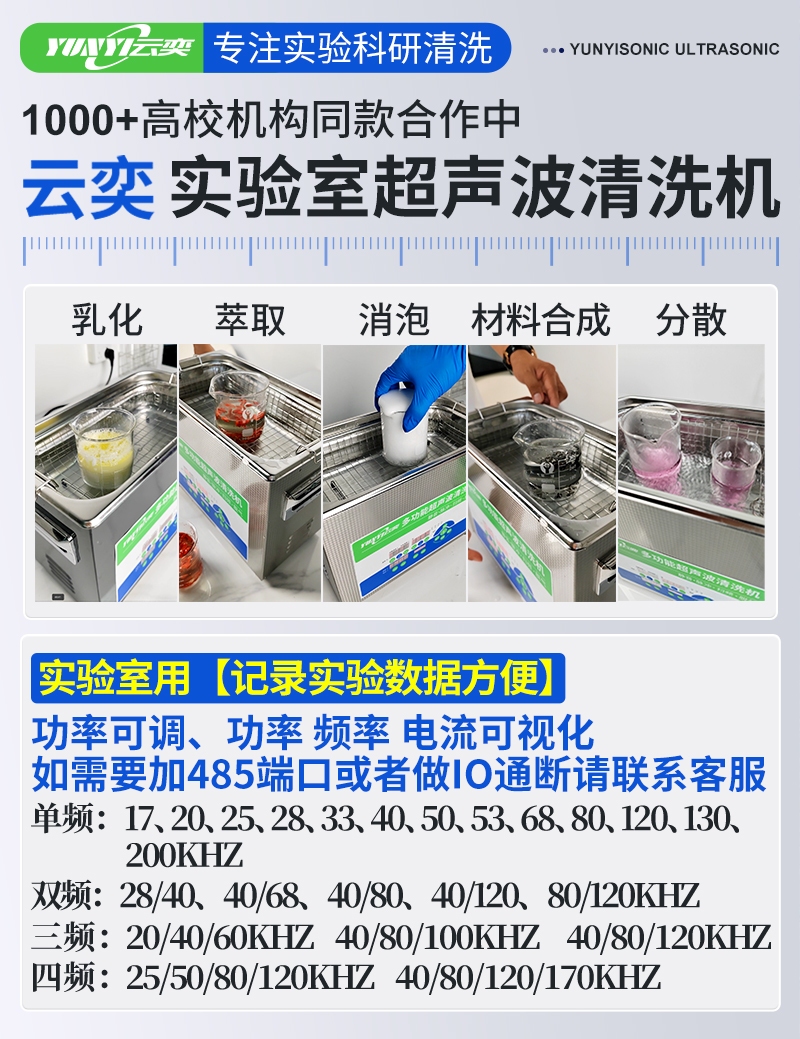 实验室超声波清洗机频率、功率密度值、波长和振力强度的关联解析 超声波清洗机在实验室中可用于混匀、乳化、分散、萃取、促融和清洗玻璃器皿、烧杯试管等。轻松清洗实验器皿表面的污垢和污染物,因此在实验室中被广泛使用。那我们如何有针对性的选择合适超声波频率和功率呢? 超声波频率分为低频(17KHZ 20KHZ 25KHZ)、中频(33KHZ 40KHZ)、高频(68KHZ 80KHZ 120KHZ 132KHZ 200KHZ) 频率的区别 低频(17-25khz) 中频(33KHZ 40KHZ)高频(68-200KHZ) 低频的特点:波长长,空化气泡大但是不均匀,空化泡崩塌产生的力度也大,所以低频通俗讲就是振力更大,但是它的力量属于简单粗暴型,对于清洗来讲适合粗洗,尤其是重油重锈,对于实验来讲污水、废水、抑藻类的实验用的最多 中频的特点:波长适中,空化气泡数量和空化泡崩塌产生的力度都适中,所以中频也俗称超声波通用频率,适合普通的清洗和一些常规小实验,例如普通促融、催化、分散粉末、清洗常规的实验器皿等 高频的特点:波长短,空化气泡密集均匀,空化崩塌产生的力度比较温和超声波场域更加均匀,具有高穿透性,通俗讲就是振力细腻柔和,适合精密度高的物件或者实验,例如清洗微米级纳米级的盲孔通孔、分散微米级纳米级的小颗粒、提取细胞内的物质、催化团聚合成新材料等 三者最简单的区别就是:把手放到20Khz里面皮肤表皮会有麻麻痒痒的感觉很强烈,把手放到40K里面皮肤表皮会有麻麻痒痒的感觉有点像鱼疗的感觉,把手放进120Khz里面,高频的高穿透性直接打进骨头,骨头发疼,这个就是三者之间最直接的感受区别 超声波波长=液体中的声速/频率 液体中声速约1450m/秒 =1450000mm/秒 波长越长,空化泡越大,空化泡崩塌产生的力度越大,也就说振力力感更强 通过以上解析,频率越大,波长越短,振力越绵柔细腻,穿透性越强,所以只要涉及到微米级纳米级颗粒的实验或者精密度高的物件和实验,统一选择高频(68-200KHZ),如果是涉及普通的清洗和实验就用通用频率(33KHZ 40KHZ),涉及到清洗重油重锈,重污渍或者是乳化、和粘稠度相关的实验、降解有机物的实验,统一选择低频(17-28KHZ) 超声波清洗机有一个重要的数值叫 功率密度值 功率密度值=发射功率(W)/发射面积(cm²),功率密度标准不低于0.3W/cm²,比0.3高的越多,效果越好,因为超声波清洗机是依靠底部的振头工作的,配的振头越多功率越大,那功率密度值也越大,效果越好 |