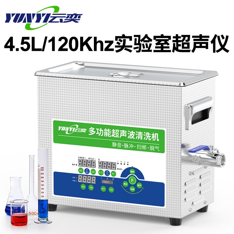 功能:静音、扫频、脉冲、脱气、加热、功率 频率 电流可视化、功率可调 1.型号:YL0404-120(数码按键款/底振式) 2.内槽尺寸:长300mm*宽150mm*高100 mm; 3.外型尺寸:长325mm*宽175mm*高280 mm; 4.超声波额定功率:0-200W(安装4个50W振头)加振款 5.超声波额定频率:120kHz 6.加热额定功率:300W 7.温度控制:数码显示控制(常温-80°C可设置) 8.时间控制:数码显示控制,精确到秒(1-9999秒可设置) 9.容量约:4.5L(4分排水阀) 10.清洗机内槽采用T1.5mm厚优质不锈钢材质冲压成形、无缝焊接,外壳采用防指纹不锈钢板包装,美观耐用,整机304不锈钢(包括内槽、壳体、阀体、管路); 11.电源要求:AC220V 50HZ 12.标配不锈钢清洗篮、不锈钢防尘盖、电源线等等