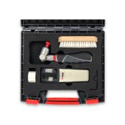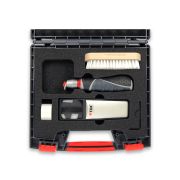 由我们的油漆测试专家品牌 TQC Sheen提供,使您能够执行符合 ISO 2815-2003 标准的涂层压痕测试。 ISO 2815-2003 测试方法是一项国际 ISO 标准,使用压痕测试来测量油漆、清漆和相关产品的单层或多层涂层的残余变形。 压痕长度可显示涂层系统在实际条件下可能出现的变形程度。您需要一台 布氏压痕硬度计,我们的产品就是理想之选! 使用我们的布氏压痕硬度计 布赫霍尔兹(布氏)压痕试验是一种重要的涂层硬度评估方法,但它涉及什么? 简而言之, 特定几何形状的测试体使用定义的测试负载在规定时间内作用于样本。在指定的恢复时间后,使用显微镜测量所得压痕的长度。根据压痕长度(以毫米为单位),可以计算: 布赫霍尔茨压痕硬度 = 100/L 压痕深度(µm,约)= 8 x L² 硬度测试要点 要有效使用布氏压痕硬度计,您需要测试一个光滑且涂层均匀的样品,该样品应放置在干净且水平的基材上,以抵抗测试力。必须有足够的涂层厚度,例如,要比 上面的压痕深度至少超过 10 µm。 对于比较测试,样品应具有相同的涂层厚度;样品的调节和测试应在相同的环境条件下进行。 布赫霍尔茨硬度压痕测试是Qualicoat、QIB和 GSB 认证实验室的强制性测试。 我们的布氏压痕硬度测试仪套件 布赫霍尔茨硬度压痕测试采用带有锋利金属轮的校准滑动砝码。该套件配有照明显微镜和气泡水平仪、数字双计时器、两个标记和一个模板。该套件的精确、校准组件可让您一次又一次地进行可靠的可重复测试。 难以超越的硬度测试工具 我们为每项测试提供硬度计——从努氏硬度测试到洛氏硬度测试,无论您需要测试油漆还是金属。我们可靠的设备让您能够执行符合大量行业测试标准的硬度测试。 功能和优点