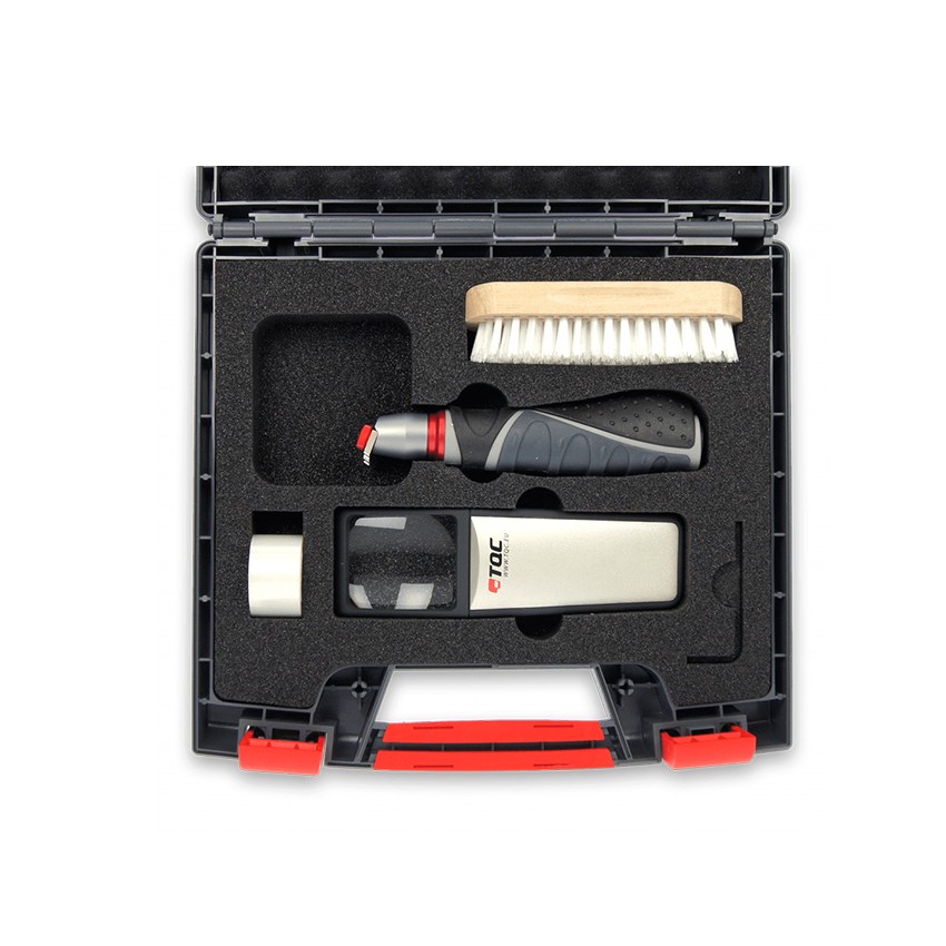 划格法是一种测量表面干燥涂层附着力的一种测试方法,运用TQC Sheen划格法附着力仪在两个外导线之间的一排6/11个刀片,划出25/100个方格,再通过对比格定出评价等级,齐全的刀具尺寸可根据标准用于不同的涂膜厚度和底材,每一套附着力测试仪都由轻质、舒适的手把,坚韧的刀具组成,还包括刷子,小型放大镜,胶带。 TQC Sheen 划格法附着力仪主要有CC1000,CC2000,CC3000三种型号。 TQC Sheen CC2000 单一划格附着力仪的切割刀易于更换。仪器上有可以自动调节的刀片固定器,这就保证了刀片上面压力的均衡。可以简便地变化切刀,CC2000划格刀附有旋转手柄,所以不需要额外的工具。 每个 TQC 横切附着力测试套件 CC2000 都包含一个带切割器的手柄、一把刷子、一个照明放大镜和一卷符合 ISO 2409 标准的胶带。 刀具和胶带也可以作为备件订购。 功能和优点