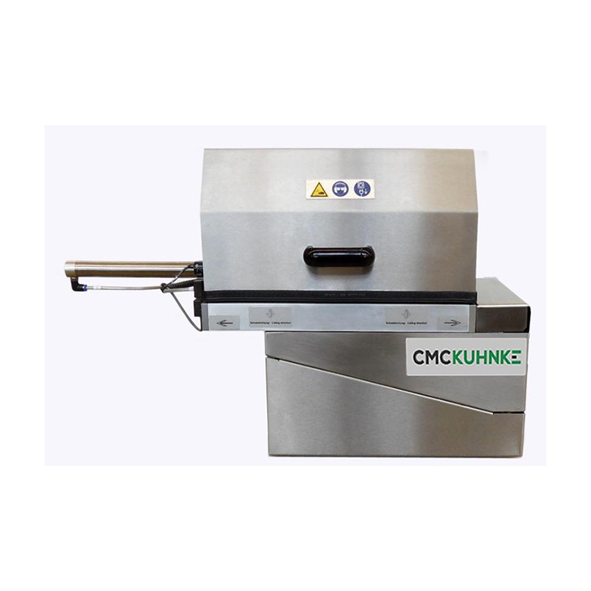 CMC-KUHNKE AGS-3000 自动卷边切割锯是设计用于自动精确且高效的二重卷边切割,为卷边检测分析提供高清的剖面图像。此款切割锯具有结构坚固,几乎无故障的性能。 将切割样罐放入切割槽,感应到罩子盖上,自动启动,并完成切割。安全高效的自动卷边切割仅需要简单的培训即可。在切割过程中,操作人员手不需要接触罐子,这样的好处是非手触式的切割模式确保了操作的安全性。安全性的特征还包括带铰链的安全罩,确保了安全,也降低了噪音。可快速更换切割片的设计模式,并配置了换锯片安全保护互锁,接地故障保护等。 自动卷边切割锯采用两片平行的锯片,其中一片安装在罐子的直径位置,使切割的剖面与切线垂直。两切割片间的距离可以根据所需的切割槽宽度进行调整。这样保证了精确的切口,避免了变形,减少了毛刺等给卷封投影和检测造成影响。适用罐型含括200-603 (50mm-153mm),复合罐,塑料罐,气雾罐,及非圆形罐。我们特制的切割导轨——可定制的滑槽,能在几秒内更换,也使切割锯更易于操作。 功能和优点