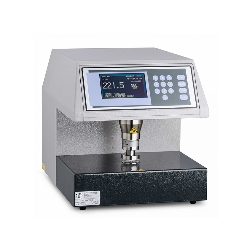 别克Bekk型平滑度仪:该仪器的工作原理是在一定真空度和压力下,测出一定量的空气通过试样表面与支撑玻璃垫接触面所需的时间。按照标准的定义,则表述为“在特定的接触状态和一定的压差下,试样面积和环形板之间由大气泄入一定量空气所需的时间,以秒表示”。试样越平滑,它与玻璃垫之间的接触就越紧密,空气通过的速度就越慢,一定量的空气通过所需的时间就越长,表明纸样表面平滑度就越高。 Messmer Buchel 的 58-05 别克平滑度测试仪,是目前市场上精密可靠的测试仪器,本仪器特别适用于非常光滑的表面,如有涂层的纸。 58-05 BEKK 平滑度测试仪用空气泄露的时间(秒)来描述样品的平滑度。测试原理是仪器内部产生真空,测量气体通过样品表面从而使内部真空从50.66Kpa下降到48.00Kpa所需的时间。或者,可以设置压力从50.66Kpa–29.33 KPa下降所需的时间。仪器配有1/1真空室和1/10真空室。非常光滑的纸在1/10的体积下进行测试,能够节省大量的测试时间。 在测试平滑度很高样品过程中,仪器会快速给出估计的测试结果(ETR),能在10秒后给出一个估计结果。等待的时间越长,估计就越准确。可选配一个透气度测试头来测试透气度。 设备符合以下行业标准: ISO 5627 TAPPI T-479 DIN 53107 功能和优点