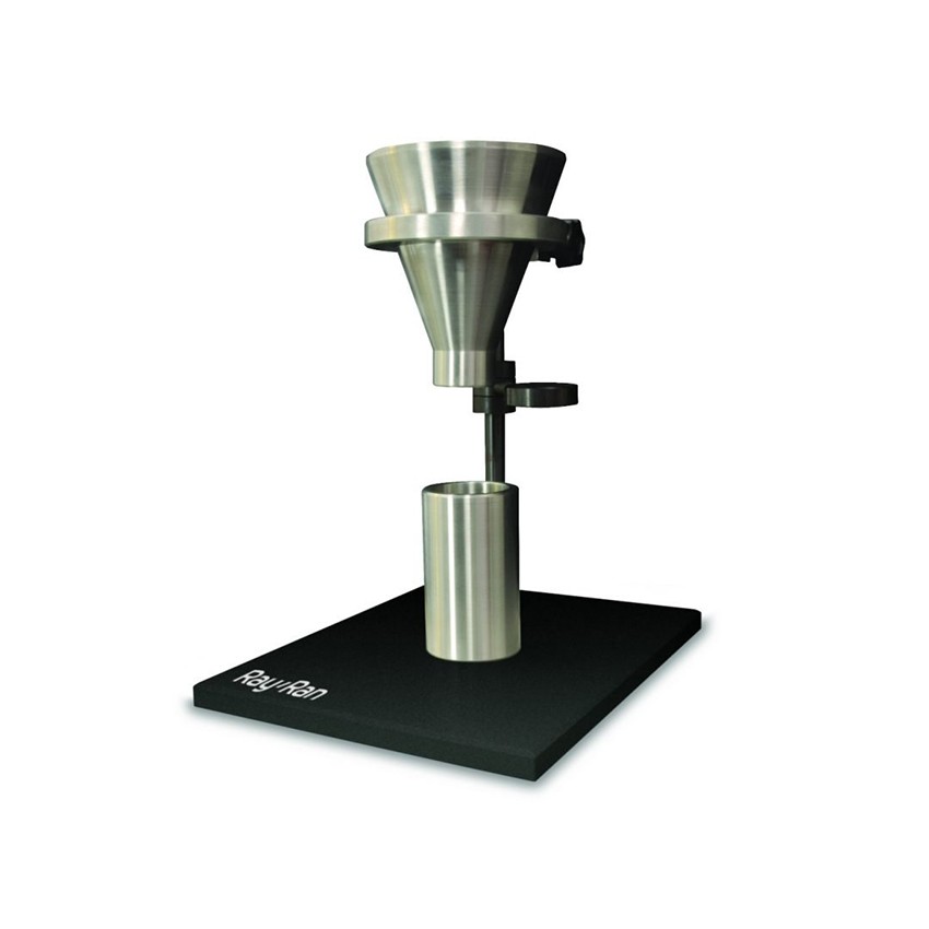 堆密度是粉末、颗粒和其他碎状的固体, 在参照矿物组分(土壤,砾石) ,化学物质 (药物)成分,食品和任何其他块状的微粒或 颗粒物质使用的一个特殊属性。它被定义为材 料的许多粒子通过它们占据的总体积除以质量。 总体积包括颗粒体积,颗粒间空隙体积和内部 孔隙体积。 堆密度不是材料的固有特性,它可以根据材料的处理方式不同而改变。如将一定体积的粉末倒入一个罐内会得出一个特定的堆密度;如果振动罐子,粉末颗粒会移动且通常会更紧密,从而导致堆积密度增大。因此,粉末的堆密度通常分为松散堆密度和振实堆密度(其中,振实堆密度是指粉末经过压缩处理后堆密度,通常通过振动容器来实现。) ASTM D1895 方法 A 主要用于测量细颗粒的表观密度,可以很容易地通过一个“V”形漏斗注入,将待测试的材料流入一个100立方厘米体积的圆柱形杯中。 测试范围: 表观密度 体积系数 流动性 技术规格: 符合 ASTM D1895 方法 A V字型漏斗 量杯100cm³ 竖立式关闭漏斗 ASTM D1895 方法 B 主要是用来测量较大的粗颗粒、骰子或粒料的表观密度不能很容易通过A方法中的漏斗来注入的材料。所测试的材料将流入一个400立方厘米体积圆柱形杯中。 测试范围: 表观密度 体积系数 流动性 技术规格 符合 ASTM D1895 方法 B V字型漏斗 量杯400cm³ 竖立式关闭漏斗 ASTM D1895 方法 C 薄片、线、碎片和切割纤维不能使用试验方法A和B灌装,Ray-Ran为ASTM试验标准的方法C提供了量度气缸和柱塞。由于此类材料在松散灌装时体积很大,并且通常将其压缩以减小体积,因此测量其在较小压缩荷载下的密度非常有用。为该试验提供了1000cm³的量度气缸及外部有1mm刻度的称重柱塞。铅粒用于将柱塞重量增加至2300g以压缩材料。 测试范围: 表观密度 技术规格 符合ASTM D 1895方法C 测量漏斗 称重柱塞 铅粒 ISO 方法 R60 主要用于测量易于通过特定漏斗灌装的模塑材料的表观密度,试验材料可流入已知容量为100cm³的圆筒形杯中。 测试范围: 表观密度 体积系数 流动性 技术规格 符合 ISO R60 规范 量杯100cm³ 待机时漏斗关闭 可根据要求提供其他型号。 功能和优点