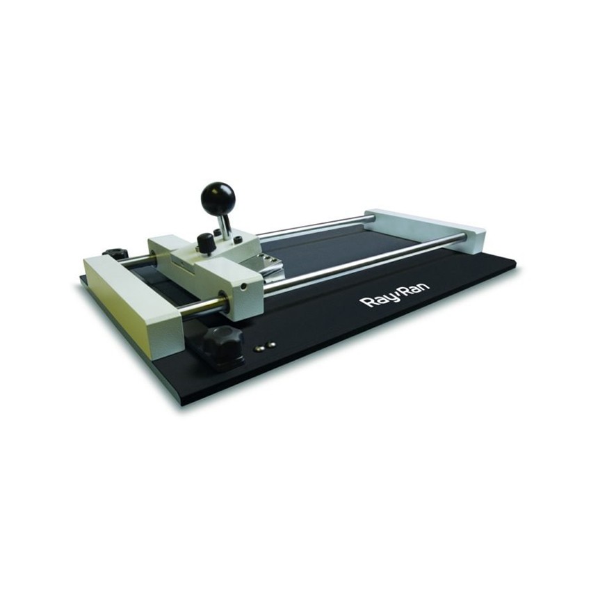 Ray-Ran微型切割机操作非常简单,其使用专门设计的刀头将塑料薄膜和其他材料切割成各种宽度的矩形条。当常规模切不适合或不推荐此方法时,那么该设备则是制作符合各种国际试验标准的拉伸和撕裂试验条的理想选择。该设备已迅速成为Ray-Ran产品系列中的具有价值的工具,非常适合厚度高达250μm(0.25 mm)的所有类型的软包装、薄膜、箔和纸。 操作极其简单,可调节弹簧加载头部支持在钢导轨上滑动,并使用线性滚子轴承来保持切割时的刚性和精度。刀头由优质工具钢制成,并镀铬防锈,可容纳2个定制的锋利刀片,且刀片的间隔距离精确控制在0.01mm以内。刀头刀片磨损后很容易拆卸,并需要更换磨损的刀片,但安装时无需对新刀片进行进一步调整。最小切割宽度0.25mm,可提供通过一次便可切割单个或多个试样的刀头,提高您的试验能力和生产率。 该设备配有一个嵌入式底座,该底座可以容纳切割底座垫(如卡片或橡胶板),这有助于在切割过程中保护切割刀片。还安装了夹紧机构以牢固支撑样品材料。作为标准配置,该设备的切割冲程长度可容纳A4尺寸的样品,但该尺寸可根据客户的具体要求而增加。 如需操作微型切割机,可将材料插入切割轨道下方,并将其放入夹紧机构。将刀头轻轻滑动到材料上方距离其固定边缘约10mm-20mm的位置。将切割机向下推至材料顶部,并穿过导轨拉动刀头。到达导轨末端后,将刀头返回其起始位置。只需松开夹紧机构即可,然后移除材料并将样品修剪至所需长度。 可选附件: 根据客户要求切割的冲程长度 根据客户要求制造的刀头 一个刀头上有多个刀片可用 切割刀片(一包10个) 功能和优点