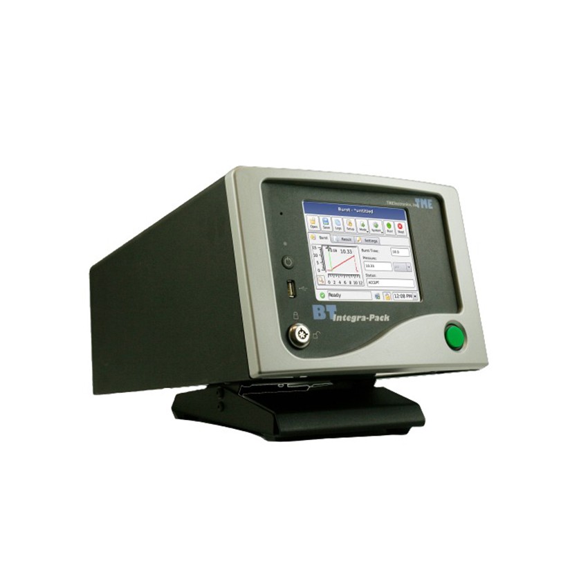 用于爆破测试、蠕变测试、蠕变失效测试和真空衰减测试的密封性测试仪。 TME BT-Integra 是一款桌面台式安装,高分辨率的检漏仪;是一台小体积,界面友好的测试设备。电子压力和流量控制单元提供了高精度和可重复的测试条件,而自动和高流量输出允许测试大型多孔包装。应用范围包括一系列柔性或刚性包装,多孔或非多孔包装、开放或密封包装。 参数设置可以手动,也可以自动完成 全自动设计的 BT Integra 可以提供自动模式测试任何包装件,无需输入参数。但是,仍然可以在一些复杂条件下,使用手动设置,以便人为控制如充气速率控制,背压下降精度等参数。如此可以满足特殊参数,或包装类型,亦或是进行特殊研究或数据收集工作。 基于图标的触摸驱动彩色显示屏 设备搭载了一块彩色触摸显示屏,使操作变得简单。简洁的导航功能,可以方便的浏览当前菜单数据,或历史数据。BT Integra 定义了许多图标模块,从而使自动及手动模式切换、以不同模式查看数据或图表、及数据的累积或清除变得容易。 BT Integra 使传统的爆破实验明晰化。能够体现测试的完整过程,其中不仅包括爆破点数值,还可以把整个测试各阶段参数进行归档, 并为您的品控工作提供数据帮助。 功能和优点