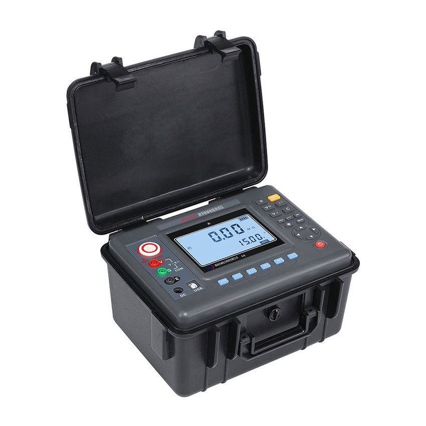 数字绝缘电阻测试仪又名兆欧表、高压绝缘电阻表,用于绝缘电阻的测试。本仪表具有大屏幕LCD灰白背光显示、数据存储、数据查阅、报警、自动放电、充电、自动关机等功能。同时还具备测量直流电压交流电压吸收比和极化指数功能。整机美观高档,量程宽广,分辨率高,操作便捷,携带方便,准确、可靠、性能稳定,输出功率大,抗干扰能力强