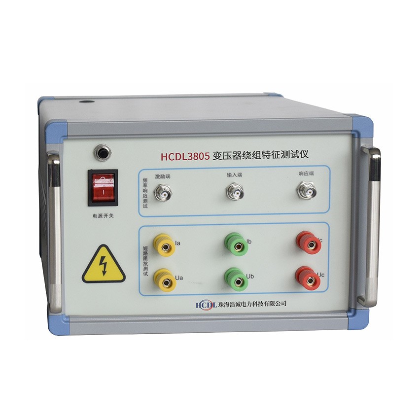 HCDL3805 变压器绕组特征测试仪 用于电力变压器绕组特征测试,采用目前世界发达国家正在开发完善的内部故障频率响应分析(FRA)方法,能对变压器内部故障作出准确判断 频响法采用扫频法对变压器绕组特性进行测量,不对变压器吊罩、拆装的情况下,通过检测各绕组的幅频响应特性,对6kV及以上变压器,准确测量绕组的扭曲、鼓包或移位等变形情况 频响法测量速度快,对单个绕组测量时间1-2分钟以内 频响法频率精度非常高,精度高于0.001% 频响法采用数字化频率合成,频率稳定性更高 频响法采用5000V电压隔离、充分保护测试电脑安全 频响法可同时加载9条曲线,各条曲线相关参数自动计算,自动诊断绕组的变形情况,给出诊断的参考结论 频响法采用分析软件功能强大,软件、硬件指标满足电力行业标准DL/T911-2016 短路阻抗法不用外接电源,采用市电AC220V低压电源,便可自动对变压器的AB、BC、CA高压绕组施加电压,同步采集数据,自动计算出阻抗误差百分比,测试结果非常直观 短路阻抗法适用于任意大小容量的变压器的阻抗测试 短路阻抗法测试过程中显示测试电流、测试电压的波形图谱,方便实时监测测试情况 仪器具有测量电感的功能