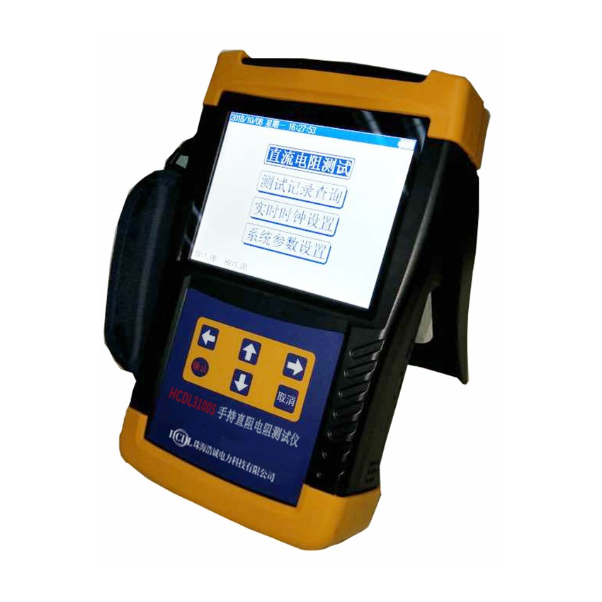 HCDL3100S 手持直阻电阻测试仪 变压器直流电阻测试仪是一款创新型产品,产品体积小巧,便于携带。产品不仅适合变压器、互感器、电抗器等感性试品的测量, 而且适合铜排、导线、开关触点等阻性试品的测量,仪表测试速度快、准确度高 输出六档电流,最大输出10A电流,并且可自动选择电流,方便快捷 量程宽、精度高,500uΩ~50KΩ 具有电阻温度换算功能 具有反电动势保护、断线保护、断电保护、过热报警等多种保护功能 5.6寸超大工业级高亮度彩色液晶屏,在强阳光下显示依然清晰可见 配备外置式打印机,便于数据打印 具有本机存储和优盘存储