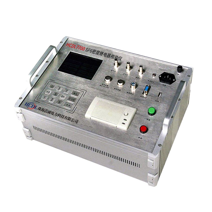 HCDL7700 SF6密度继电器校验仪 用于各种SF6密度继电器性能校验。 采用高精度压力传感器和世界先进的磁流体技术,所有测试过程为自动测量,避免了由于人为因素而产生的误差 结构紧凑,体积小,重量轻,便于携带 机电一体化程度高,技术先进、性能可靠 彩色大屏液晶,汉字菜单,直观、简便 采用的电源具有UPS功能,适合野外作业 配有微型打印机,随时打印测试结果 密封性能好,校验过程中不浪费SF6气体 具有带电测试功能,在信号线带有DC110V/220V的情况下可进行测试 可手动设置温度,自动采集温度,测量更准确 具有自校功能,长时间使用后可进行校验修正,以确保仪器的测试精度 具有时钟功能,可在线对时钟进行修正 具有数据存储功能,并具有掉电数据保护功能,方便数据查询 连接气管两端配有进口快速逆止阀,操作简便又防止管路进入水份和空气 配有多种开关过渡接头,操作使用方便,大多数密度继电器无须拆卸即可直接进行校验