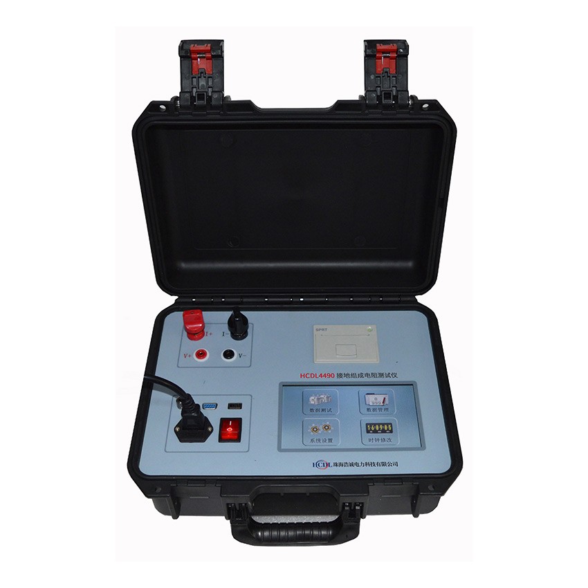 HCDL4490 接地组成电阻测试仪 整机由高速单片机控制,自动化程度高,操作简便 采用全新电源技术,输出电流稳定,输出电压高,测量速度快,量程范围宽,适合各种携带型短路接地线及个人保护接地线的试验使用 自带时钟,万年历,可保存1000组测试数据,方便客户随时查询 保护功能完善,内部电源过热后自动保护,有效防止损坏电源,同时带有电压线反接提示功能,防止测试线接反时造成测试数据的不准确 采用1024X600液晶屏,强光下显示清晰,全触屏操作 自带热敏打印机,可将测试数据实时打印 智能化功率管理技术,仪器总是工作在最小功率状态,有效减轻仪器内部发热,节约能源