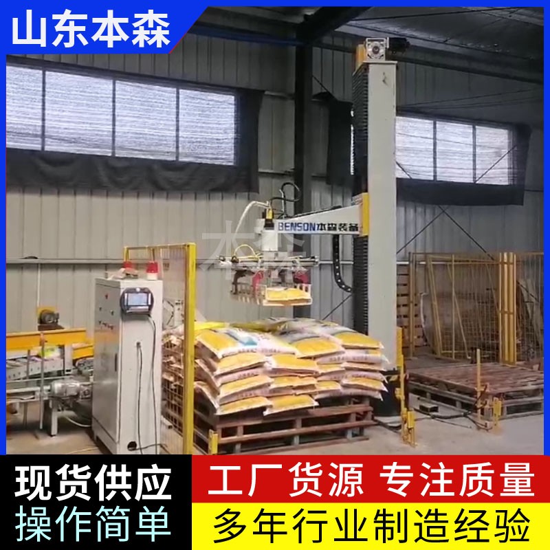 山东本森智能装备 袋装猫粮立柱码垛机器人是一种专为宠物食品行业设计的自动化设备,通过机械臂、传感器与智能控制系统的协同作业,实现袋装猫粮的高效抓取、精准堆叠与自动化码垛。该设备融合了机械工程、计算机视觉与运动控制技术,成为宠物食品生产线向智能化转型的核心装备。 一、定义与核心构成 袋装猫粮立柱码垛机器人属于工业机器人范畴,其核心结构包括立柱式机械本体、高精度视觉识别系统、柔性抓取机构及智能控制系统。立柱式设计通过垂直轴与水平臂的联动,实现三维空间内的精准定位;视觉系统搭载高分辨率相机与AI算法,可实时识别猫粮袋的尺寸、形状及位置;抓取机构支持真空吸盘、柔性夹爪等多类型末端执行器,适应不同材质包装的需求。 二、工作原理:感知-决策-执行闭环 1.环境感知 视觉系统通过多角度摄像头扫描输送线上的猫粮袋,利用深度学习算法分析包装形态(如平铺、侧立)、尺寸偏差(±2mm精度)及表面反光特性,生成三维空间坐标数据。 2.路径规划 控制系统根据感知数据,结合预设垛型参数(如层数、排列方式),通过逆运动学算法计算机械臂的**运动轨迹,避免与周边设备碰撞。例如,针对10kg袋装猫粮,系统可动态调整抓取力度,防止包装破损。 3.精准执行 机械臂按规划路径完成抓取、提升、旋转及堆叠动作。以每小时400-500次的作业频率,将猫粮袋码放至托盘或货架,单层码垛误差控制在±3mm以内。 三、技术优势:效率、精度与柔性的平衡 1.效率跃升 相较人工码垛,机器人可24小时连续作业,单线产能提升300%以上。例如,某宠物食品企业引入设备后,日处理量从20吨增至80吨,订单交付周期缩短40%。 2.精度保障 重复定位精度达0.1mm,确保每层猫粮袋对齐度优于98%,有效防止垛型坍塌。同时,力控传感器可实时监测抓取压力,避免因过度挤压导致包装变形。 3.柔性适配 支持快速换型,通过示教器或离线编程软件,10分钟内即可完成不同规格猫粮袋(如1kg至20kg)的码垛参数切换。抓取机构兼容纸袋、塑料编织袋及复合膜包装,适应市场多元化需求。 4.安全可靠 配备光电保护装置、急停按钮及防撞检测系统,当人员或障碍物进入作业区时,机械臂立即停止运动。此外,设备采用IP65防护等级,适应宠物食品生产中的粉尘环境。 四、应用场景:全链路覆盖 1.产线末端集成 与自动包装机、金属检测仪及重量分选设备联动,形成“包装-检测-码垛”一体化产线。例如,猫粮袋经封口、称重后,由输送线直接送至机器人工作区,实现无缝衔接。 2.仓储物流优化 在立体仓库中,机器人可将码垛完成的托盘自动输送至货架,配合AGV小车完成出入库作业。通过与WMS系统对接,实现库存动态管理,减少人工盘点误差。 3.多品类兼容 除猫粮外,设备可扩展至狗粮、鸟食等宠物食品的码垛,甚至适配化工原料、建材等行业的袋装物料处理,体现技术复用价值。