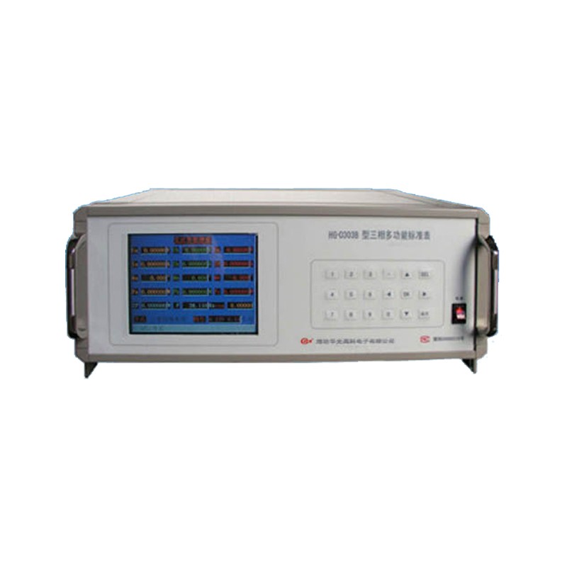 华光高科HG8518型三相多功能标准表,其核心部分采用32位DSP和16位高速低功耗数模转换器组成高精度工频交流采集器。既可用做校验装置的标准表,又可用做测试校验装置的校验仪。使用6.5寸TFT彩色液晶屏,图表字符显示清晰。具有量程宽、精度高、工作稳定可靠、操作简单的特点。 产品特点 1、可测量交流电压、电流、有功功率、无功功率、频率、相位和功率因数; 2、可测量电压、电流谐波含量和波形失真度; 3、作为测量有功电能、无功电能标准时,最大输出标准脉冲频率可达2MHz; 4、可测量校验装置的电压、电流、功率稳定度;5.可测量校验装置的标准偏差估计值; 6、可测量校验装置的三相电压对称度、三相电流对称度; 7、可测量校验装置安放被检表位置的磁感应强度; 8、可测量直流电压电流(选项); 9、变送器测量; 10、设有RS-232接口,可由PC进行控制操作; 11、与HG0301AT型交直流电表 • 变送器校验台配合,可组成一套高精度、高稳定度的0.03级三相交流电表测试系统。 技术参数