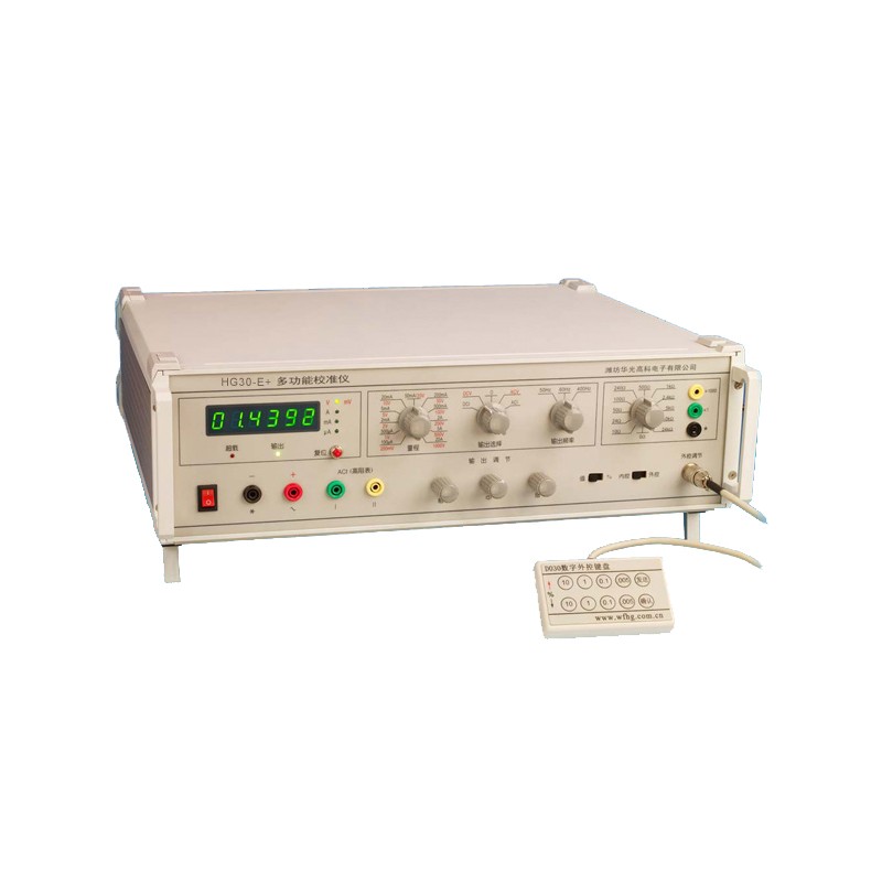 DO30-D型三用表校验仪是智能化交、直流标准电压、电流校准仪(其中交流输出为真有效值显示)。仪器输出调节可选择键盘(按键)控制或电位器控制。具有数字显示、量程宽、分档细、精度高、稳定性好、使用方便等特点。适用于检定、检验、维修四位半数字三用表、各种0.2级、0.5级以下指针式交、直流电压、电流表;亦可作为高稳定度测试电源使用,配合高等级标准表,校对0.1级电流、电压表。 主要功能 1 、5 1/2位LCD数字显示输出量,按实际值和百分比两种方式同时显示。 2 、采用数字键盘和高科技电位器两种方式控制输出量的增减。 3 、外控调节器可以离机控制输出量的增减,调节器上有键盘和电位器两种配置,任意转换。 4 、交、直流电压输出范围为0~1050V,分11个独立量程。 5 、交、直流电流输出范围为0~10A,分11个独立量程。 6 、交流提供四种输出频率:50Hz、60Hz、400Hz,使用晶振保证频率的准确度和稳定性。可以为用户定做各种频率,以满足实际工作中的需要。 7 、输出超载能自动保护,停止输出,保护被检仪表。 8 、钳形表测量:配用本仪器专用标准线圈,可测量0~1000A电流,误差±0.3%。 附表: