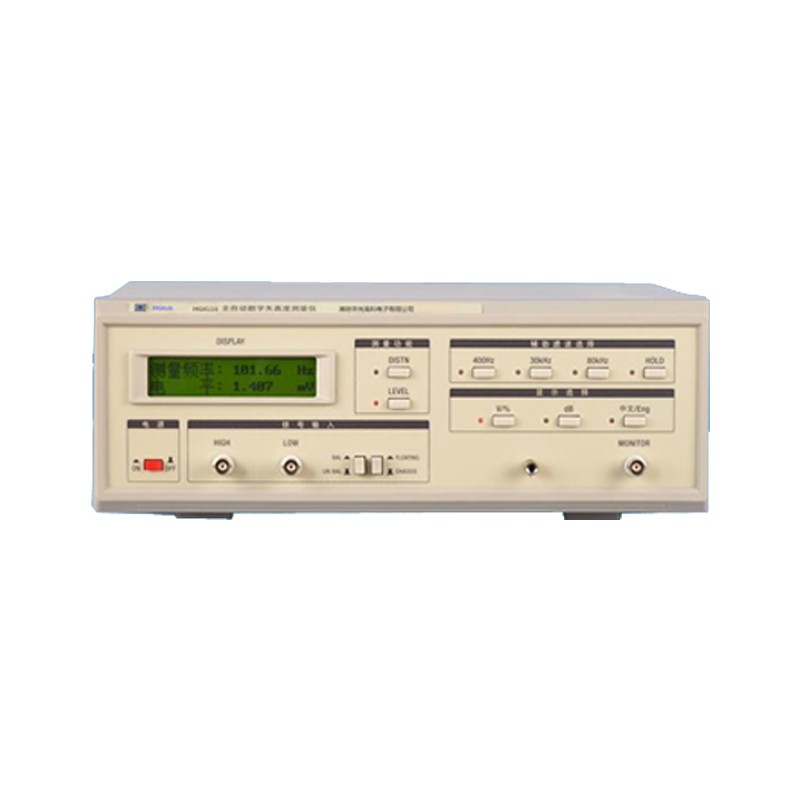 HGSZ8116型低失真度测量仪是华光高科推出的新型全自动数字化的仪器,是根据当前科研、生产、计量检测、教学和国防等用户实现快速精确测量的迫切需要而设计的。最小失真测量达到0.01%,它是一台性能/价格比较高的智能型仪器。 被测信号的电压、失真、频率全部集中在一块LCD液晶屏上自动显示,采用了真有效值检波,电压测量可在输入电压300μV~300V,频率10Hz~550kHz内实现全自动测量;失真度测量可在输入电压300mV~300V,频率10Hz~110kHz内全自动测量,失真测量范围为100%~0.01%。该仪器具有平衡和不平衡输入电压和失真测量的功能。幅度显示单位可为V、mV、dB,失真度显示单位可选择%或dB。该仪器内设400Hz高通、30kHz和80kHz低通滤波器,方便用户使用。 该仪器是一台具有全自动测量信号电压、频率和信号失真等多种功能的新一代智能型仪器,也是当前在信号失真测量领域国内较高水平的一种全数字化、全自动、多功能型的智能化仪器。 主要特征 1.具有全自动失真度测试功能,内部自动校准,自动跟踪滤波。 2.可测量的最小失真度≥0.01%。 3.设置了 30kHz,80kHz低通滤波器,降低了宽带非谐波(例如噪声)的影响,使测量低频段信号的谐波失真时更精确。 4.提高了测量信号失真时输入信号的电压范围:300 mV~300V。 5.具有测试平衡信号或不平衡信号的功能。 6.增设了频率计数功能,被测信号频率可直接由LCD液晶屏精确显示。 7.保留了示波器输出监视插孔,方便使用者观察被测信号的波形,以及小失真信号测量时的整机滤谐状态。 8.陷波网络滤除特性可达90dB~100dB。 9.采用高精度真有效值检波器检波,有效减少检波误差。 基本工作特性指标